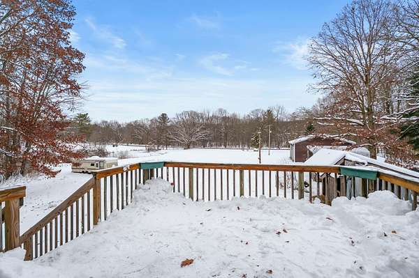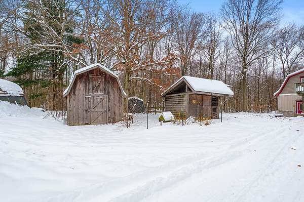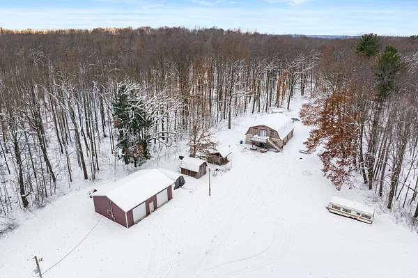 Welcome to this spacious 2-story home on over 11 beautiful acres, offering flexibility and endless potential! With 5 bedrooms, 2 bathrooms, 2 full kitchens, and multiple living areas, this property can function as a single-family home, duplex, multi-generational setup, or a private in-law suite. Charming original woodwork adds warmth and character throughout. The land is a true highlight featuring a peaceful private pond, a stream running through the property, and wooded acreage ideal for hunting, exploring, and outdoor recreation. Enjoy 2 decks overlooking the property, a 30x40 heated pole barn with electric, chicken coop, and additional shed. This property offers the perfect setup for country living or an investment opportunity! Home is in need of some cosmetic updating; seller is selling as-is and will make no repairs. Property is priced accordingly. Don't miss this one, it won't last long!!