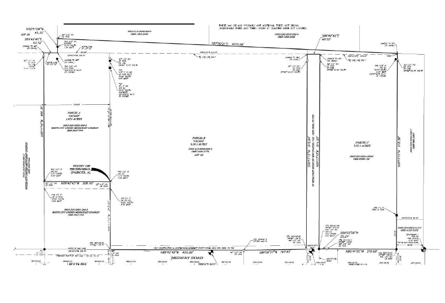 WHITE CITY S/D 03 36 40 THAT PART OF LOT 23 LYG N OF MIDWAY RD-LESS THAT PART LYG S OF LI 40FT N OF AND MEAS AT RIGHT ANGLE TOC/L MIDWAY RD MPD IN OR 644-482-(9.49 AC) (MAP 34/03N) (OR 2534-2776) / 03 36 40 N 406.3 FT OF E 208.7 FT OF SW 1/4 OF SW 1/4 OF NW 1/4(1.95 AC) / 3 36 40 BEG 1360 FT E OF CENTER OF OLEANDER AV AND MIDWAY, TH RUN N 670 FT, TH E 245 FT, TH S 670 FT, TH W 245 FT TO POB-LESS MIDWAY RD R/W AND LESS TO SLC AS IN OR 761-1911 AND LESS FOR ADDL RD R/W MPDAF: FROM W 1/4 COR OF SEC, TH N 00 11 02 W 48.16 FT, TH S 89 42 45 E 1308.27 FT, TH N 00 17 15 E 40 FT TO POB; TH CONT N 00 17 15 E 15.05 FT, TH N 89 00 38 E 25.24 FT, TH S 89 40 58 E 219.89 FT, TH S 00 17 15 W 15.50 FT, TH N 89 42 45 W 245.13 FT TO POB- (3.53 AC - 153,767 SF)