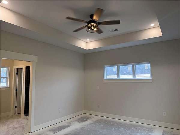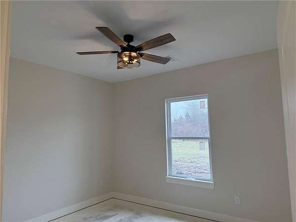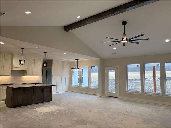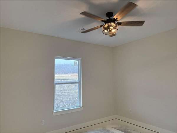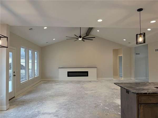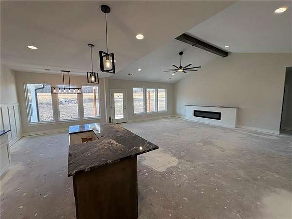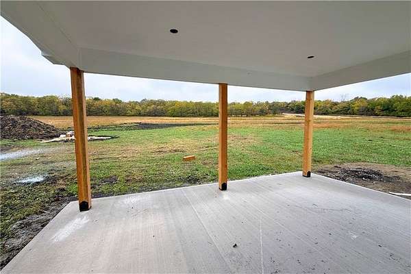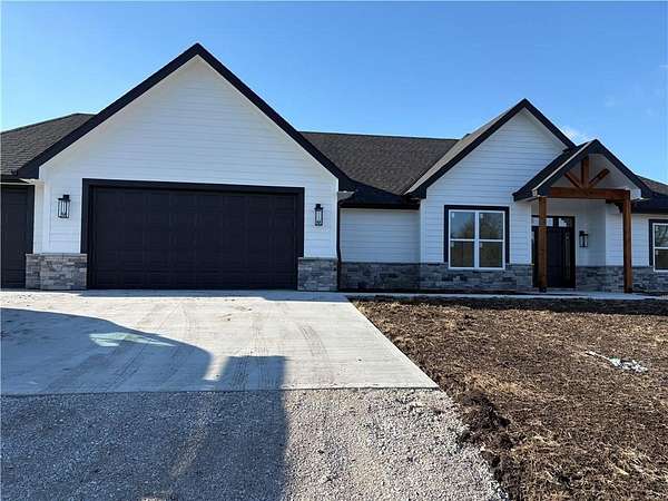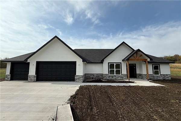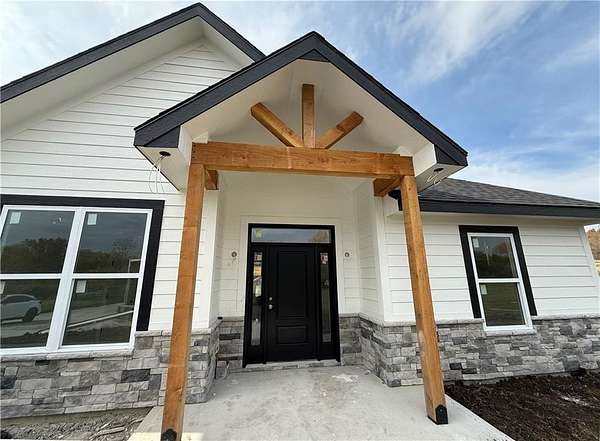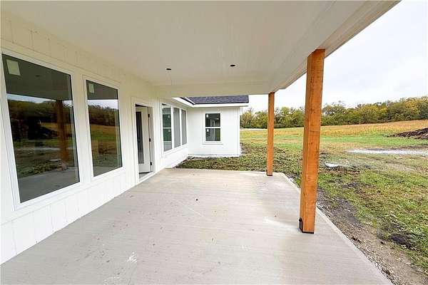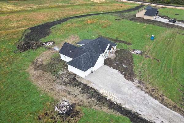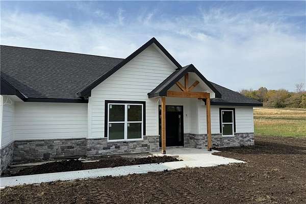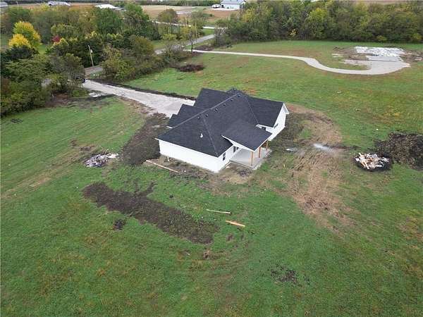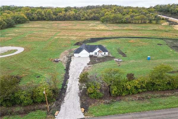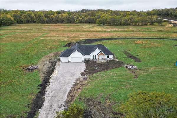 Brand-New Ranch on 5.03 Acres - Ready Mid-December! Experience the perfect blend of peaceful country living and modern comfort in this brand-new ranch home, nestled on 5.03 acres just 1.5 miles off Hwy 50, right next to Powell Gardens. Step inside to a spacious Great Room featuring a vaulted ceiling, electric fireplace, and abundant natural light. The kitchen shines with granite countertops, a center island, ample cabinetry, and a walk-in pantry--ideal for everyday living or entertaining. Off the pantry is a built-in storm shelter for peace of mind! Your primary suite offers a touch of luxury with a tray ceiling, double vanities, walk-in shower, and private commode room. The huge walk-in closet connects directly to the laundry room for added convenience. Additional bedrooms and a full bath with a tub/shower combo complete the layout. You'll love the covered back patio overlooking gorgeous acreage views--perfect for your morning coffee or evening unwind. Located on a chip-and-seal access road, this home combines rural tranquility with quick highway access--making it a dream spot for commuters!