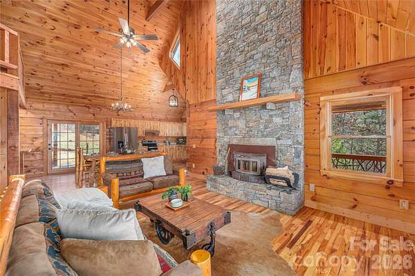 Newly refreshed chink log cabin set on just over 2 acres, less than 15 minutes from Canton and Waynesville, and approximately 30 minutes to Asheville. Tucked into a peaceful mountain setting, this inviting home is surrounded by rolling views and a truly picturesque natural backdrop. Morning light filters through the trees, while expansive outdoor space offers quiet moments to unwind, gather, and take in the scenery. The timeless craftsmanship of chink log construction is thoughtfully paired with recent updates, creating a warm, refined retreat. An exceptional opportunity for elevated mountain living, a private getaway, or a discerning investment.