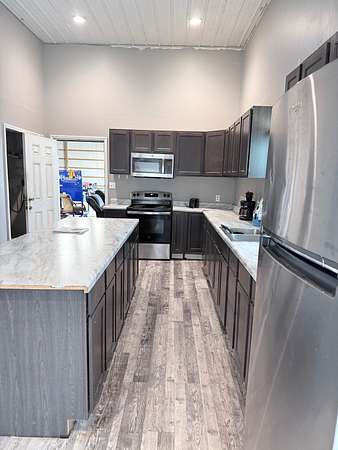 Est $1,072/moBuilt in 2022, this 50x80 barndominium includes a 50x22 living space that is 2 bedroom, 1 bath and a full kitchen.3 mini splits easily heat and cool the living space. The expansive shop area measures 50x58, is fully insulated and electricity run throughout. The property includes 7.29 acres with 2.93 acres being north of 54 Hwy.