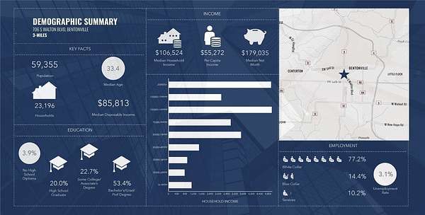 Suite 8 at 706 S Walton Blvd offers a premier medical office leasing opportunity consisting of approximately 4,000 square feet of recently renovated, move-in ready space designed to support a wide range of healthcare users. The suite features an efficient medical layout including 10 exam rooms, 1 X-ray room, a centralized nurses station, a welcoming lobby and waiting area, one break room, and two restrooms, allowing for seamless patient flow and daily operations. Strategically located directly across from the Walmart Home Office and just 1.5 miles from the new Walmart Campus, the property benefits from exceptional visibility within one of Northwest Arkansas' most active commercial corridors, while also providing convenient regional access just 2.6 miles from Interstate 49. Offered at $29.00 PSF NNN, Suite 8 presents an outstanding opportunity for medical or healthcare providers seeking a high-quality space in a prime Bentonville location.