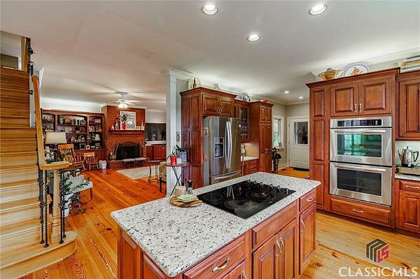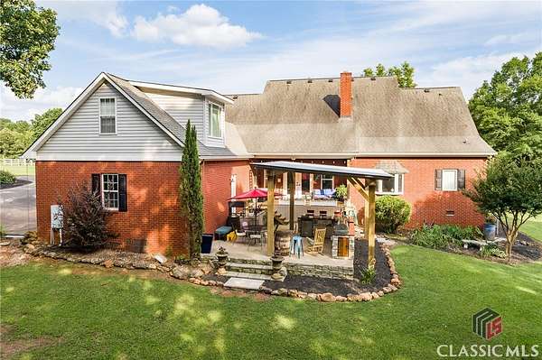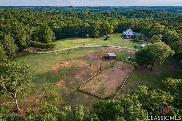 Luxury Meets Country Living in This Exceptional Estate! Property includes 3 Parcel ID's. Welcome to this stunning 6-bedroom, 5-bath custom home boasting over 4,000 sq ft of refined living space. Nestled on 53 private acres, this property is ideal for both entertaining and outdoor enjoyment. The heart of the home is a fully renovated chef's kitchen featuring granite countertops, stainless steel appliances, and custom cabinetry. Elegant heart pine flooring, plantation shutters, and an upgraded trim package create timeless charm throughout the main level. The spacious owner's suite offers private access to the back deck and a spa-inspired bath with a frameless glass walk-in shower, soaking tub, and quartz countertops. A second owner's suite upstairs provides added comfort for guests or multi-generational living. Step outside to a true entertainer's paradise. An expansive deck leads to a covered outdoor kitchen complete with grill, refrigerator, sink, granite counters, and even a beer tap. Rinse off after a day outdoors with the open-air shower featuring hot and cold water. Equestrians and nature lovers will delight in the split pasture with river-sand riding arena (with lights), a run-in horse shed, and water/power access. Explore 2-3 miles of private trails winding through your wooded retreat or relax by the spring-fed, stocked pond with brim, bass, a dock, and abundant wildlife. Additional features include a fully encapsulated crawl space, upgraded systems, and thoughtful attention to every detail. This is more than a home-it's a lifestyle.