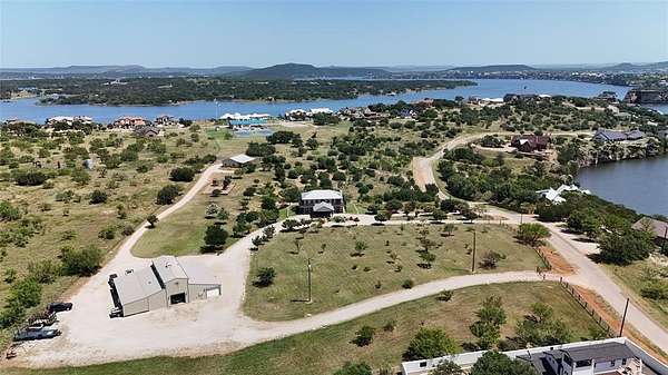 Nestled in a secluded area overlooking Possum Kingdom Lake's famous Hell's Gate, this unique property offers an unparalleled living experience. With nearly 6 acres of land, a beautiful two story home, a separate bonus house, and a large shop, this Estate provides ample space for relaxation, entertainment, and outdoor activities. The main residence, built in 2011, features a wrap around porch with stunning views, 3 bedrooms, 2 bathrooms, and an open concept kitchen and living room. Recent updates include new HVAC and Trex Decking Boards in 2024, a water heater in 2021, and new carpeting with a lifetime warranty in May 2025. The bonus home was built in 2024 and provides additional living space. 1200 sq ft on the first floor with a 600 sq ft loft! Spray foamed with enhanced energy efficiency and superior thermal insulation. An expansive, custom built playground, that includes a trampoline, merry go round, super geo dome climber, and 3 huge playhouses with slides and swings. This is essentially your own personal park for the kids. The property also boasts a massive 4,000 sq foot garage, with a 700 sq ft workout gym in the upstairs, and meticulously maintained ATV trails. Plenty of storage for your boats, ATV's, toys, tools, etc. Platted as a residential estate lot, which allows you to have horses. This exceptional property offers a unique blend of natural beauty, luxurious living, and endless possibilities! Come see for yourself the breath taking views!
