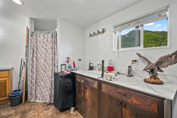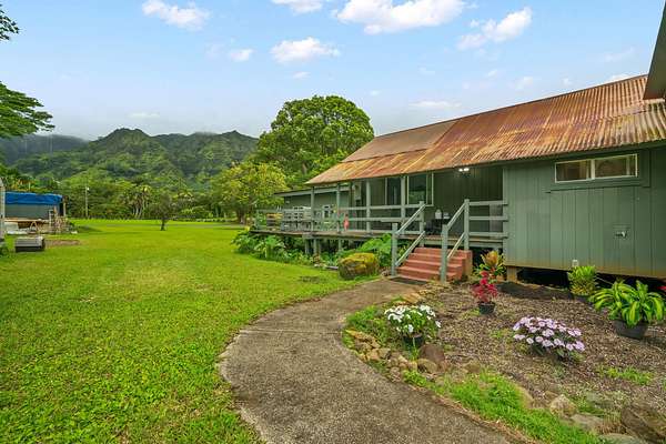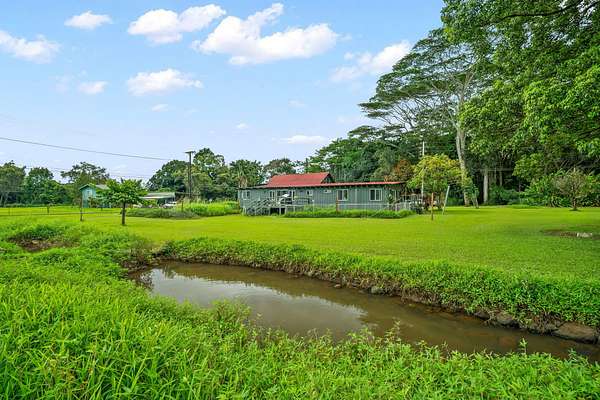 1.75 ACRES ON MAGICAL KAHUNA ROAD. Step back in time to old Hawai'i with this vintage home with flexible floorplan. Views of waterfalls, the river, the pasture, dramatic mountains, and the stream on your property. Upcountry setting is secluded yet convenient. Lush, level land for your agricultural pursuits. FOUR bedrooms and FOUR bathrooms total. Almost 3000 square feet of whimsical, vintage home that has been added on to over the last 100 years provides a flexible floorplan with separate entrances and many options. New ceiling fans and an EV charger. Main house has one regular sized bedroom and one super-sized bedroom, a large living room with vaulted ceilings, a dining room, 3 large nicer bathrooms. You will LOVE the jetted tub after a long day at work or play! Even a laundry room with washer and dryer. Three private lanais. The addition has 2 bedrooms, vaulted ceilings, kitchenette, a nicer bathroom, and washer / dryer hook-ups. Very separate and has been used as an additional rental in times past. Would be ideal for multi-generational living. Gaze at changing panoramas of Makaleha Falls, the Kapaa River across the street, and the babbling brook that bisects your 1.75 acres. Surrounded by pastures and forests with the Makaleha Mountains as your dramatic backdrop. This lush, level land is scenic and would be ideal for avocados, citrus, and other farming pursuits. Raise livestock or horses. Currently growing starfruit, bananas, soursop, Surinam cherries, guava, mango, oranges, limes, grapefruit, mountain apple and dragonfruit. This secluded upcountry location feels like Kauai of yester-year. Narrow roads that wind thru the countryside, one-lane wooden bridges, roadside fruit stands, and friendly waves from passer-byers enhance this area. Yet you are only 5-ish miles from the beach and historic Kapaa Town. Centrally located between the Northshore, Lihue, and Poipu. This enchanting property is shown by appointment only.