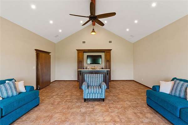 - Breakfast Bar, Cathedral Ceilings, Ceiling Fans, Dry Bar, Jetted Tub, Open Floorplan, Primary Downstairs, Split Bedrooms, Wet Bar