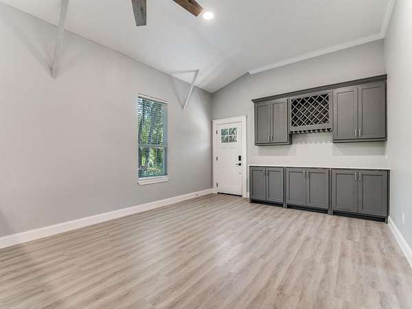 Private Sanctuary: Modern Barndominium on Nearly 5 Pristine Acres. Discover your own rural paradise on this secluded, tree-lined property where contemporary design meets elegance. This stunning 2021-built barndominium offers the perfect blend of modern luxury and countryside tranquility. Step into an open-concept haven where vaulted ceilings and abundant natural light create an airy, welcoming atmosphere. The central kitchen features granite countertops, soft-close cabinetry, and comes complete with refrigerator. A sophisticated wine bar with extensive built-in storage makes entertaining effortless, while the neutral palette throughout provides the perfect backdrop for your personal style. Four generously sized bedrooms each feature ceiling fans, ample closet space, and individual mini-split systems for personalized climate control. Two full bathrooms with tub-shower combination offer convenience. Luxury vinyl flooring flows seamlessly throughout--no carpet maintenance required. The detached garage presents incredible potential as a workshop or hobby space. A second prepared building site includes electricity and septic connections, ready for an additional residence or RV setup. Current mobile home on site does not convey and will be moved. Free standing solar panels provide eco-friendly energy efficiency and long-term savings and terms are negotiable. Unwind beside your own peaceful pond while taking in the natural beauty of your nearly 5-acre estate. With NO HOA restrictions, this blank canvas awaits your vision--whether that's a hobby farm, recreational paradise, or simply your own private sanctuary. Come and make this one yours!
