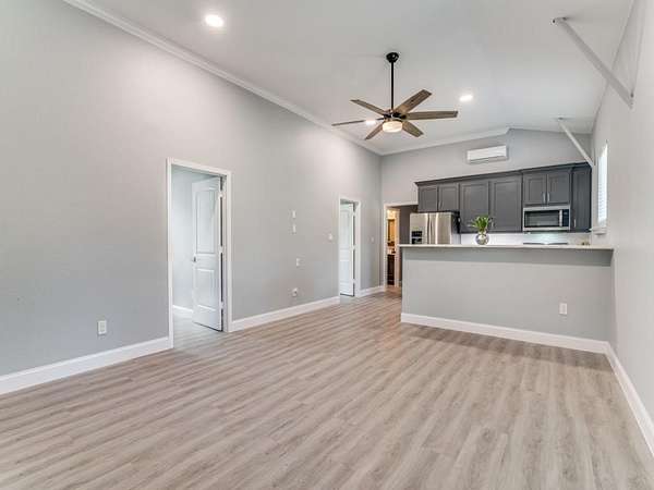 Private Sanctuary: Modern Barndominium on Nearly 5 Pristine Acres. Discover your own rural paradise on this secluded, tree-lined property where contemporary design meets elegance. This stunning 2021-built barndominium offers the perfect blend of modern luxury and countryside tranquility. Step into an open-concept haven where vaulted ceilings and abundant natural light create an airy, welcoming atmosphere. The central kitchen features granite countertops, soft-close cabinetry, and comes complete with refrigerator. A sophisticated wine bar with extensive built-in storage makes entertaining effortless, while the neutral palette throughout provides the perfect backdrop for your personal style. Four generously sized bedrooms each feature ceiling fans, ample closet space, and individual mini-split systems for personalized climate control. Two full bathrooms with tub-shower combination offer convenience. Luxury vinyl flooring flows seamlessly throughout--no carpet maintenance required. The detached garage presents incredible potential as a workshop or hobby space. A second prepared building site includes electricity and septic connections, ready for an additional residence or RV setup. Current mobile home on site does not convey and will be moved. Free standing solar panels provide eco-friendly energy efficiency and long-term savings and terms are negotiable. Unwind beside your own peaceful pond while taking in the natural beauty of your nearly 5-acre estate. With NO HOA restrictions, this blank canvas awaits your vision--whether that's a hobby farm, recreational paradise, or simply your own private sanctuary. Come and make this one yours!