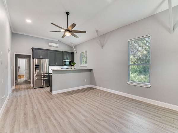 Private Sanctuary: Modern Barndominium on Nearly 5 Acres. Discover your own rural paradise on this secluded, treed property with modern finish outs. Built in 2021, it offers the perfect blend of modern luxury and countryside tranquility. Open-concept central living spaces with vaulted ceilings and abundance of natural light. The kitchen features granite countertops, soft-close cabinetry, and comes complete with the refrigerator. A sophisticated wine bar with extensive built-in storage makes entertaining effortless. Four bedrooms each feature ceiling fans, ample closet space, and individual mini-split systems for personalized climate control. Two full bathrooms have a tub-shower combination. Luxury vinyl flooring flows seamlessly throughout—no carpet maintenance required. The detached garage presents incredible potential as a workshop or hobby space. A second prepared building site includes electricity and septic connections, ready for an additional residence or RV setup. Unwind beside your own peaceful pond while taking in the beauty of the outdoors. With NO HOA restrictions, this country gem awaits your personal vision—whether that's a hobby farm, recreational paradise, or simply your own private sanctuary. Current mobile home on site does not convey and will be moved. Free standing solar panels provide eco-friendly energy efficiency and long-term savings, and terms are negotiable. Come and make this one yours!