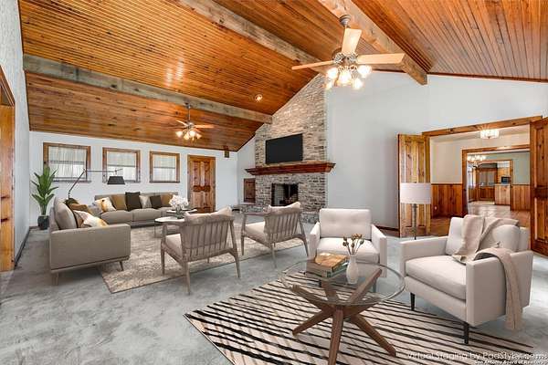 Welcome to this spacious 3,684 sq. ft. home set on 1.51 acres of land with beautiful mature trees, offering the perfect blend of comfort and country living. Built in 1981, this home provides a warm, inviting feel with its natural wood accents and expansive layout. Inside, you'll find 3 bedrooms, 2.5 bathrooms, and multiple living and entertaining spaces designed for both relaxation and gatherings. The cozy family room with a fireplace creates a welcoming atmosphere, while the large windows throughout the home allow natural light to pour in and showcase the serene outdoor views. The sunroom is a true highlight-bright and airy, ideal for enjoying your morning coffee or winding down in the evenings while overlooking the peaceful backyard. The spacious dining area and well-designed kitchen make hosting family and friends a breeze. Outdoors, the generous acreage provides endless possibilities-whether you dream of a garden, play space, or simply enjoying the shade of the mature trees that surround the property. This property is a rare opportunity to own a large home with plenty of character, privacy, and room to grow-all while being close enough to enjoy the conveniences of town.