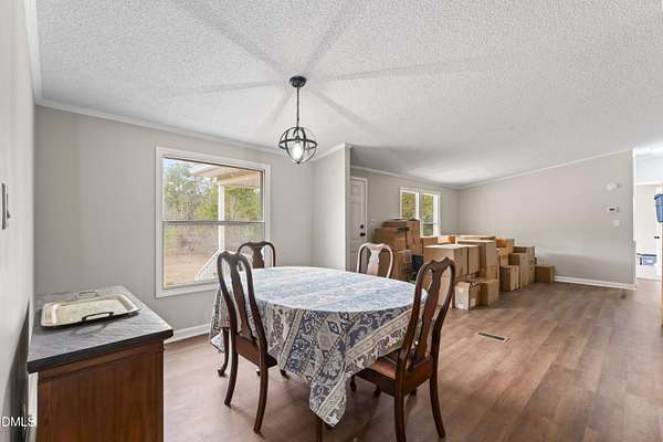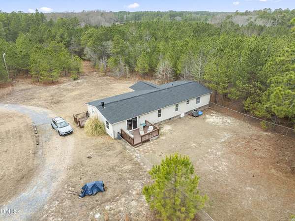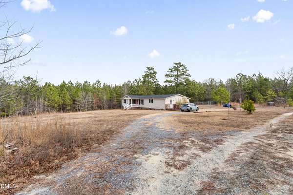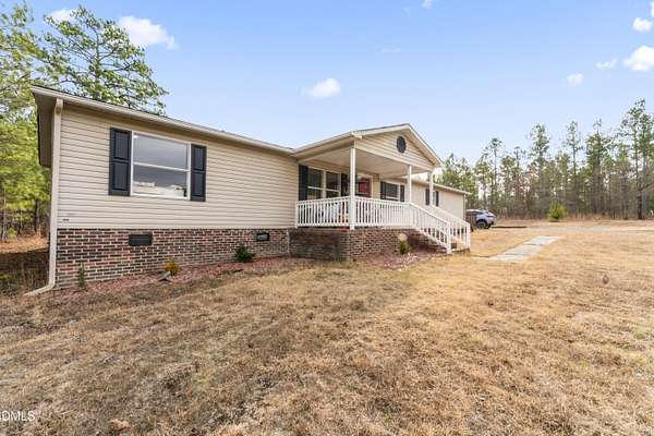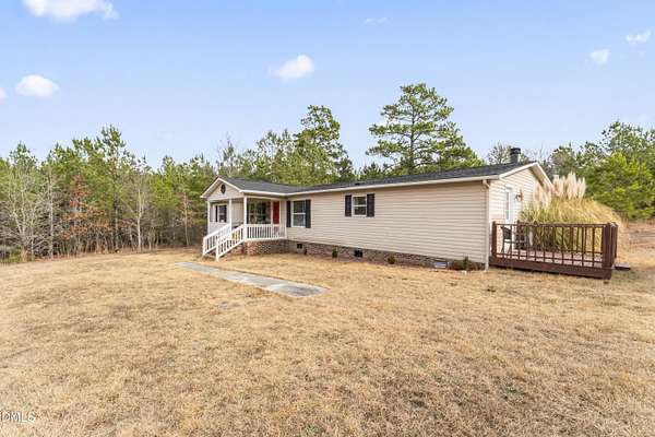 Welcome to 707 Currie Mill Road, a private 3-bedroom, 2-bath single-level manufactured home on land set on approximately 1.6 acres in Moore County. Surrounded by mature pine trees and neighboring undeveloped land, this property offers excellent privacy with no immediate rear neighbors, making it ideal for buyers seeking space, quiet, and a peaceful country lifestyle. The home features a comfortable ranch-style layout with spacious living areas designed for everyday living and entertaining. The kitchen includes granite countertops, stainless steel appliances, and ample cabinet space, flowing naturally into the dining area and main living space. Durable luxury vinyl flooring enhances functionality in the main living areas, with carpeted bedrooms for added comfort. The primary bedroom offers a private en-suite bath and walk-in closet, while two additional bedrooms and a full bath provide flexibility for guests, a home office, or hobbies. A rear deck overlooks the wooded backyard, creating a private outdoor setting ideal for relaxing or entertaining. Key systems and finishes were updated prior to and during recent ownership, providing a move-in-ready foundation while still allowing future owners the opportunity to personalize. Despite its peaceful setting, the property is conveniently located just minutes from Seven Lakes and within easy driving distance of Pinehurst, offering access to shopping, dining, healthcare, and recreational amenities. Additional highlights include no HOA, a publicly maintained road, well and septic, and a spacious lot with room for outdoor living, gardening, or recreational use.