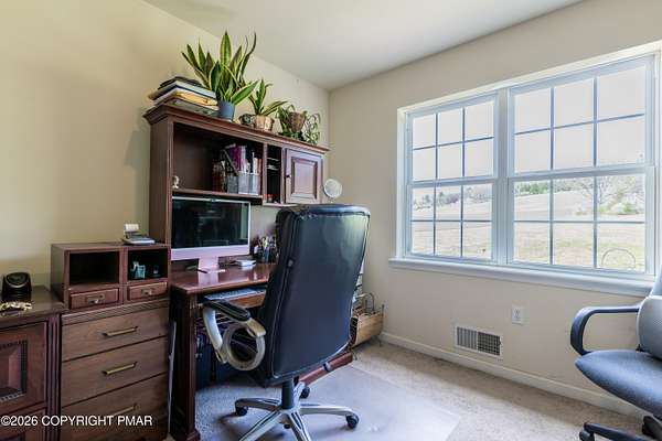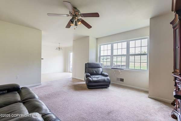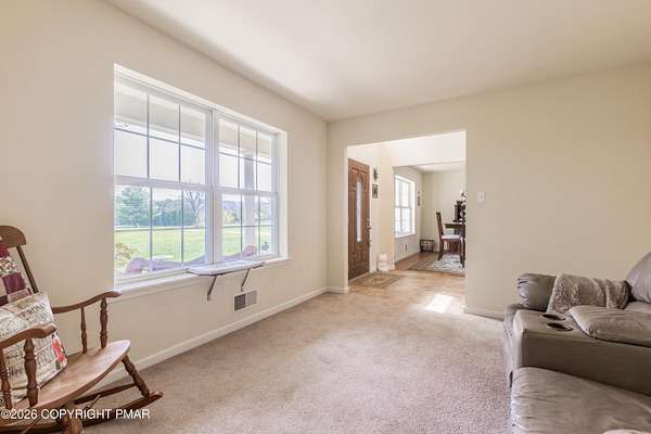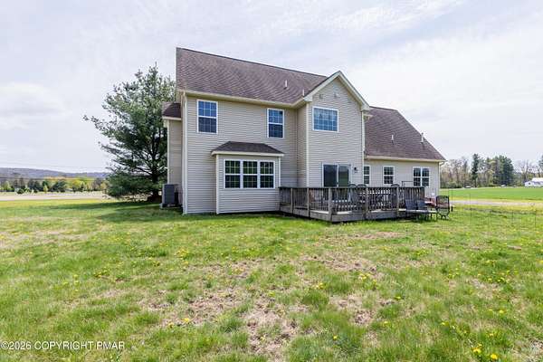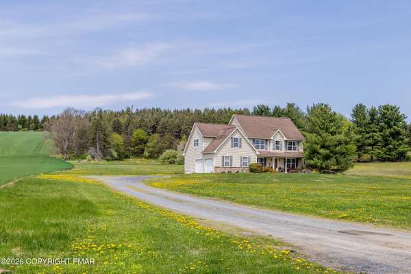 Location, Location, Location! Welcome to this well-maintained, original owner home offering the perfect blend of privacy, space, and convenience. Set on a flat, level lot of 2.36 acres, this move in ready property is nestled in a peaceful rural country setting, set back off a State-maintained road with NO HOA. Inside, you'll find a thoughtfully designed layout featuring three bedrooms plus a spacious bonus room, guest room, den, and a dedicated office. It is ideal for flexible living, work-from-home space, or hosting. The primary suite includes a walk-through closet and a relaxing jacuzzi tub. The kitchen offers newer appliances, and the home is equipped with updated central A/C and energy-efficient heating for year-round comfort. A combination of hardwood flooring and wall-to-wall carpeting adds warmth throughout, and a finished attic provides additional living or storage space. Additional highlights include a covered front porch, a rear deck perfect for entertaining, and an oversized two-car garage. The insulated basement with poured concrete foundation offers excellent storage or potential for future finishing. There is plenty of storage space throughout the home to accommodate all your needs. Don't miss this opportunity to own a spacious, move-in ready home with room to grow in a desirable rural setting!