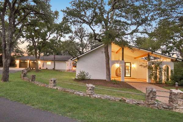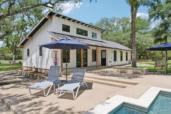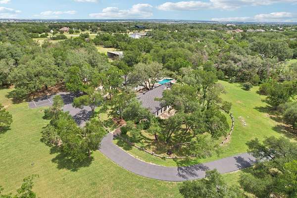 Tucked behind a private gate on 4 oak-studded acres in the coveted North Lake community, 707 Harbor Dr is more than just a home--it's a sanctuary where nature, luxury, and recreation coexist in perfect harmony. This thoughtfully reimagined 3-bedroom, 2-bathroom main residence spans 2,500 square feet and has been completely transformed from the studs up between 2019-2020. Originally crafted in 1978, the home now showcases a stunning modern design infused with timeless materials and meticulous attention to detail. Raised ceilings and Marvin black-framed windows flood the space with natural light, while wide-plank 48"x24" tile floors and solid-core doors add a touch of quiet luxury throughout. At the heart of the home, the gourmet kitchen commands attention with custom walnut cabinetry, sleek Quartz countertops, a granite composite sink, and premium stainless appliances--including a 5-burner induction cooktop and built-in Bosch WiFi coffee maker. The living area features dramatic cathedral ceilings, and the dining room rises to an impressive 12 feet, making gatherings both grand and comfortable. The primary suite is a true retreat, offering double doors to a shaded patio and a spa-like ambiance amid the tranquil landscape. The recent 2022-23 addition of a fully finished 600 sq ft guest house elevates the experience for visitors or multi-generational living. With its own bedroom, bathroom, kitchenette, and living space, guests can enjoy views of the resort-style, multi-tiered pool and hot tub, which flow seamlessly into an expansive sun-shelf and catch basin waterfall feature. Surrounding it all is lush, high-grade artificial turf for year-round vibrancy and minimal upkeep. And for those seeking activity and entertainment, an extended paved area leads to a custom pickleball court--perfect for spirited games with friends or neighbors. A paved drive and ample parking make hosting a breeze, while the short drive to Lake Georgetown offers endless outdoor adventures nearby.