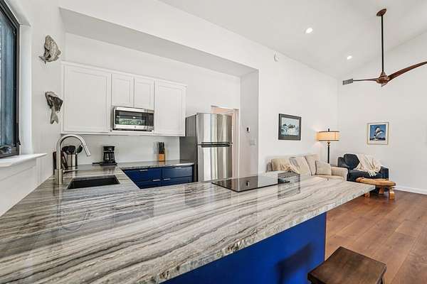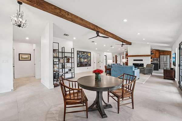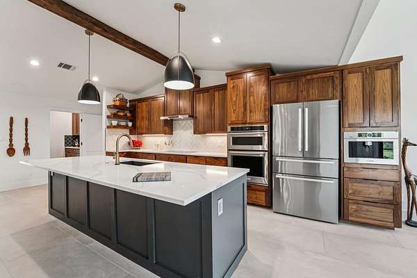 - Beamed Ceilings, Breakfast Bar, Ceiling-High, Kitchen Island, Primary Bedroom On Main, Quartz Counters, Walk-In Closet(s)