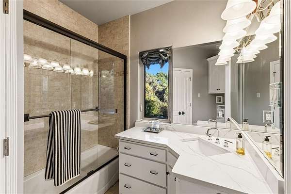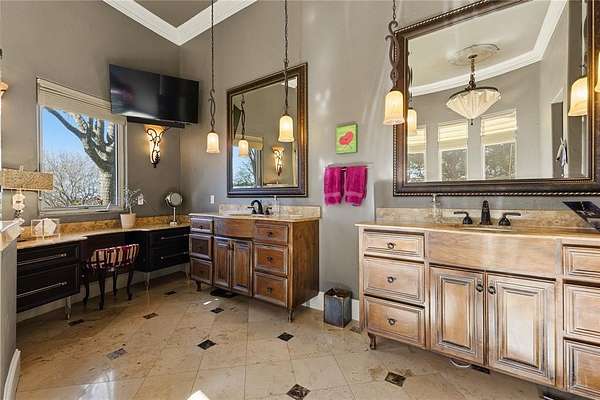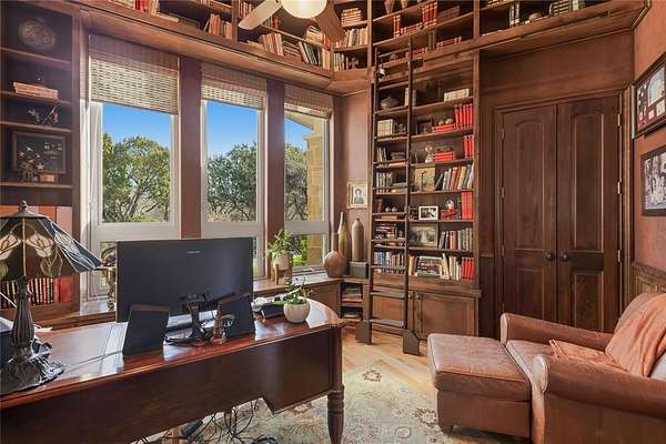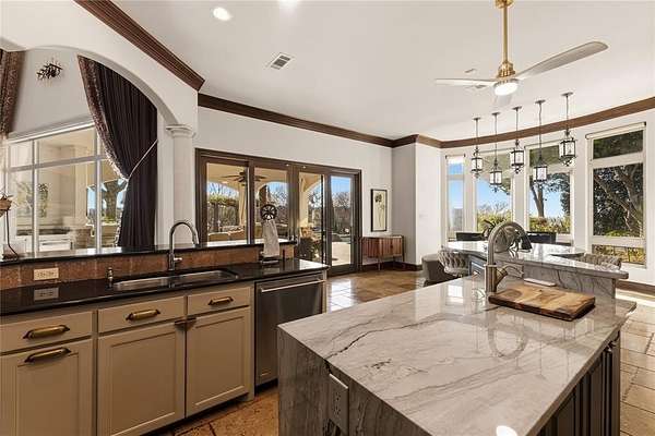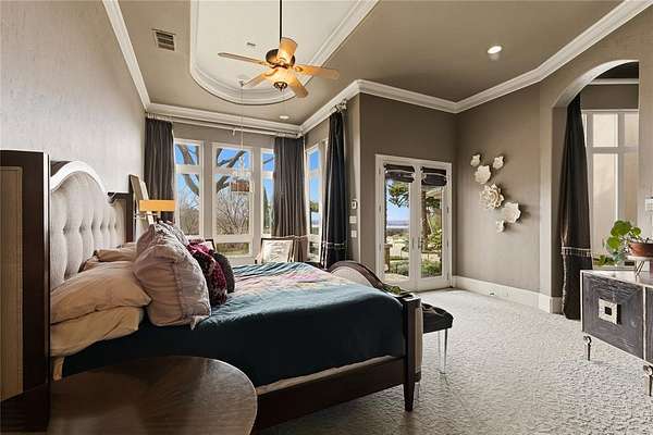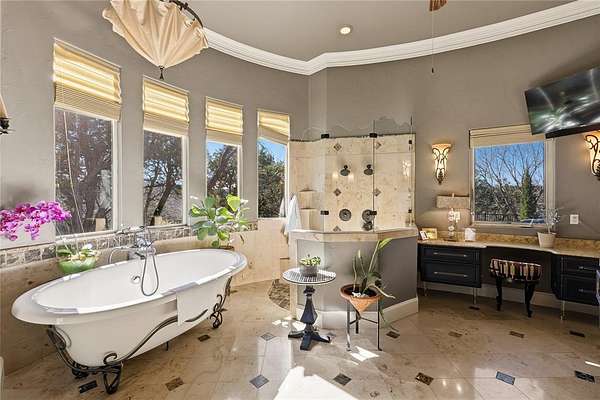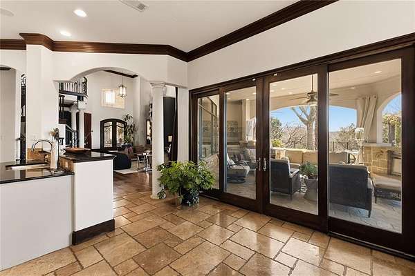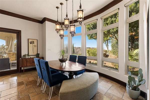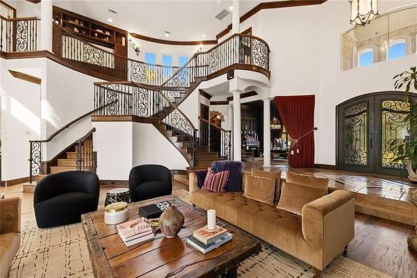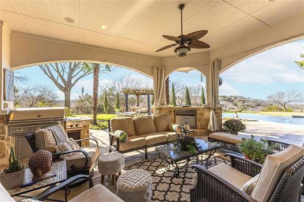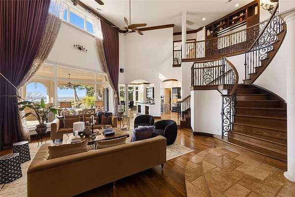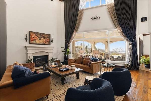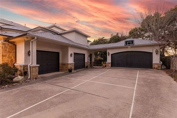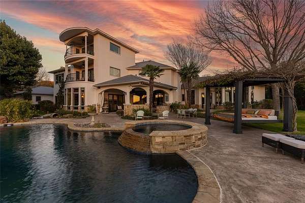 Don’t miss your opportunity to own one of the most breathtaking vistas in the DFW area. Perched on 3.19 heavily treed acres, this private Tuscan-inspired estate offers truly jaw-dropping, unobstructed views of Joe Pool Lake, Cedar Hill State Park, Arlington and downtown Fort Worth. It’s the kind of panorama that stops you in your tracks and no photo quite does it justice. Private gated entrance leads you home...tucked away from the street and surrounded by nature. The property offers generous road frontage, giving you the flexibility to divide and sell a portion if desired. Thoughtful interior design to celebrate the view with walls of windows to bring the outdoors in and fill the home with natural light. Architectural details such as towering ceilings, rich crown molding, arches, columns and custom fixtures add character throughout. The chef's kitchen is beautiful and functional with large island and prep sink, quartzite counters, pro-grade gas range, dbl ovens, custom vent hood, built-in microwave and Miele self-cleaning coffee system. Just off living room are a cozy lounge and charming wine room for unwinding. Primary suite feels like a retreat complete with private exterior access. En-suite bath features dual vanities, dedicated makeup vanity, clawfoot soaking tub, double-head walk-in shower, and expansive custom closet. Next door is a stunning office lined with wood shelving for an inspiring workspace. Add'l first-floor bedroom with full bath sits conveniently near garage. Upstairs, dual solid-wood staircases lead to spacious game room with balcony and half bath, another en-suite bedroom, and 2 add'l bedrooms with Jack-n-Jill bath. And on the 3rd floor, enjoy the gym with its own balcony! The backyard is an oasis, featuring covered patio with outdoor living area, propane fireplace, built-in grill and refrigerator. The infinity pool, natural stone accents, water features and hot tub create a spa-like experience, all set against this unforgettable backdrop!