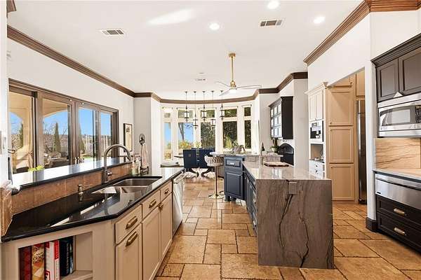 - Built-In Features, Built-In Wine Cooler, Cable TV Available, Cathedral Ceiling(s), Decorative Lighting, Double Vanity, Flat Screen Wiring, Granite Counters, High Speed Internet Available, Kitchen Island, Multiple Staircases, Open Floorplan, Pantry, Vaulted Ceiling(s), Walk-In Closet(s), Wet Bar