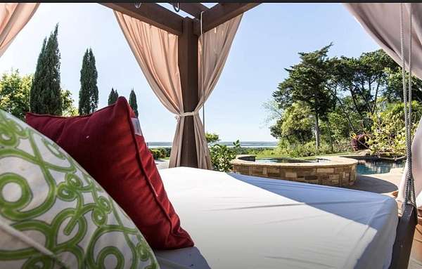 - Balcony, Covered Patio/Porch, Fence, Lighting, Outdoor Living Center, Private Yard, Rain Gutters