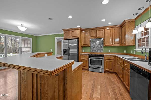 Welcome home to this charming Cape Cod style home on 1.84 acres! Inviting floorplan offering one level living with dedicated stairs leading to over 1300 sq feet of fully floored unfinished space on second level - fantastic for storage or expansion potential. Covered front porch, huge composite back deck overlooking private tree-lined back yard. Hardwood floors throughout, kitchen with stainless appliances and bar seating open to large living and dining areas. Gas log fireplace. Crown molding, recessed lighting, 2'' blinds. Primary bedroom with tile shower and large walk-in closet. Two outbuildings - one office/clubhouse with LVP floor, and metal roof Home is fully accessible to wheelchair users. Spectrum high speed internet available. Fantastic location just around the way from Lake Orange. Under 15 minutes to downtown Hillsborough, 30 minutes to Durham or Chapel Hill.