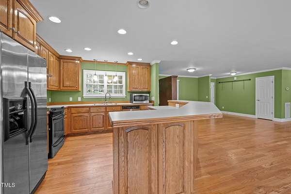 - Ceiling Fan(s), Crown Molding, High Speed Internet, Kitchen Island, Open Floorplan, Primary Downstairs, Recessed Lighting, Smooth Ceilings, Walk-In Closet(s), Walk-In Shower