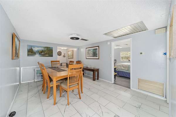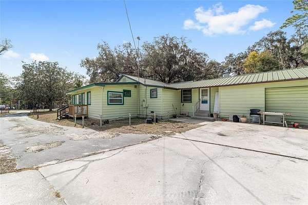 Searching for a home on acreage with plenty of room to expand and grow? This charming 3-bedroom, 2-bath home sits on just over 2 acres behind a private gated entrance, offering the peaceful country setting you've been dreaming of while still keeping you close to everyday conveniences. Scattered shade trees and a serene, park-like landscape create a quiet retreat that feels worlds away, yet you're only minutes from shopping, dining, parks, and more. Inside, the home features solid construction and timeless character, including a durable metal roof, an updated A/C unit (2019), and a classic floor plan ready for your personal touch. Laminate and tile flooring flow throughout, and the spacious eat-in kitchen provides ample counter space, generous cabinetry, white appliances, and a pantry for extra storage. As an added benefit, the property includes a private entrance to a separate living space, creating an excellent opportunity for rental income or multi-generational living. Outdoor living is easy with two inviting decks perfect for morning coffee, evening unwinding, or weekend gatherings. The property also includes a garage and a block-built detached workshop/storage building providing an ideal setup for hobbies, equipment, or future expansion. With partial fencing already in place, the acreage is well-suited for pets, play, gardening, or building additional structures as your needs grow. Despite its peaceful rural feel, this location keeps you close to everything. You're just a short drive from The Villages, medical facilities, public parks, and local conveniences. Outdoor enthusiasts will love being near Santos Trails for hiking and biking, Lake Weir for boating and fishing, and Baseline Golf Course just over a mile away. This property offers the rare combination of space, privacy, and convenience, making it perfect for anyone seeking room to breathe without sacrificing access to modern amenities.