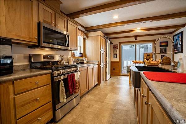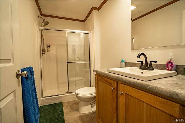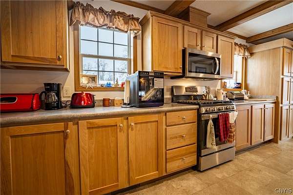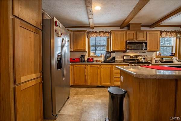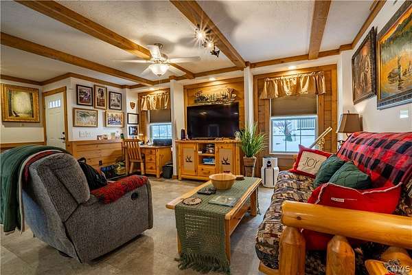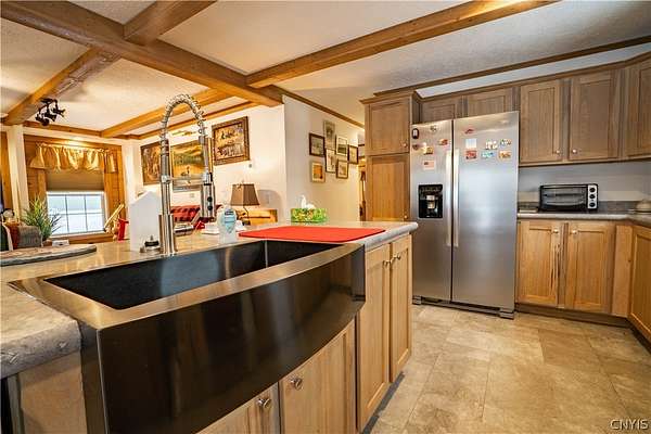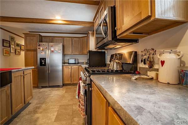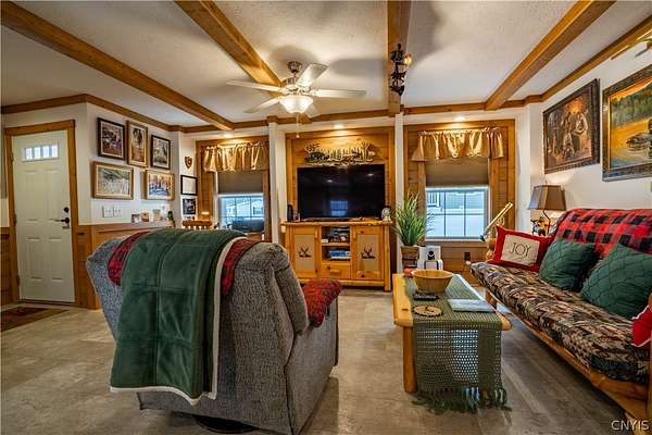 Welcome to 7077 Stearns Road Lot #14, Rome, NY a like-new 2022 manufactured home offering 1,232 square feet of comfortable, efficient living. This 3-bedroom, 2-full-bath single-wide features a fresh, contemporary layout perfect for relaxed everyday life or entertaining. Step inside to an open-concept main living area with plenty of natural light, flowing seamlessly into the kitchen and dining space ideal for family meals or hosting friends. The split-bedroom design provides privacy, with a spacious primary suite including its own full bath, plus two additional bedrooms and a second full bath for guests or family. Built in 2022, this home comes with modern construction advantages: energy-efficient features, updated systems, and low-maintenance appeal. Outside, enjoy the benefits of a double lot generous yard space for gardening, outdoor activities, play area for kids/pets, future additions like a deck, shed, or even expanding your outdoor oasis. Conveniently located in the Rome area with easy access to local amenities, schools, shopping, and major routes. Whether you're looking to downsize, start fresh, or invest in a newer home with room to grow, this property delivers great value and turnkey comfort. Priced to move - schedule your showing today and make this modern gem yours!