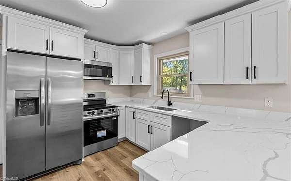 Beautifully renovated, 3 bedroom/2 bathroom brick ranch, in a prime rural location, just minutes to interstate! This move-in ready home sits on over 1.5 acres of peaceful land, offering plenty of room for play, gardening, or a hobby farm! Step inside to find a brand-new kitchen featuring updated cabinetry, beautiful quartz countertops, and updated SS appliances. Both bathrooms have been totally updated: primary en suite bath features a tiled walk-in shower, while the hall bath features a spacious double vanity and updated tub. Throughout the home, you’ll appreciate new flooring & light fixtures, fresh paint, and thoughtful updates that make every space feel brand new. Outside, enjoy the freedom of open land and outdoor living spaces. Enjoy your coffee on the large front porch, or the brand new back deck. Multiple outbuildings, ideal for storage, hobbies, or a workshop. Whether you’re looking for a quiet retreat or a place to grow, this property offers endless possibilities!