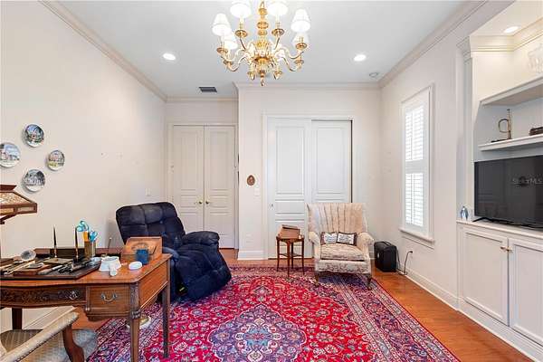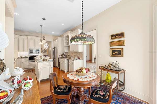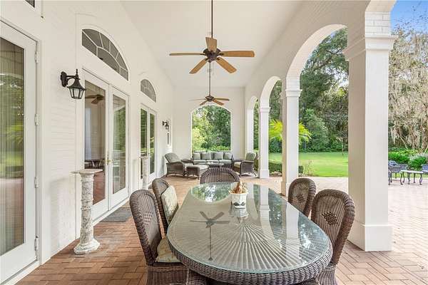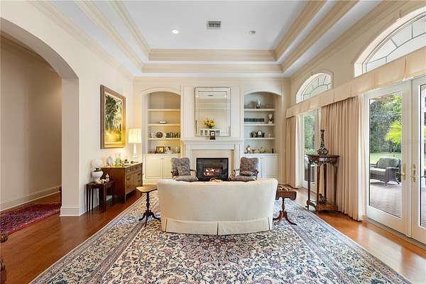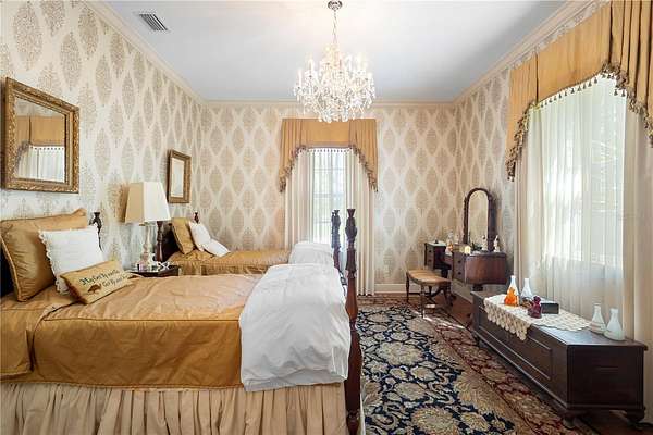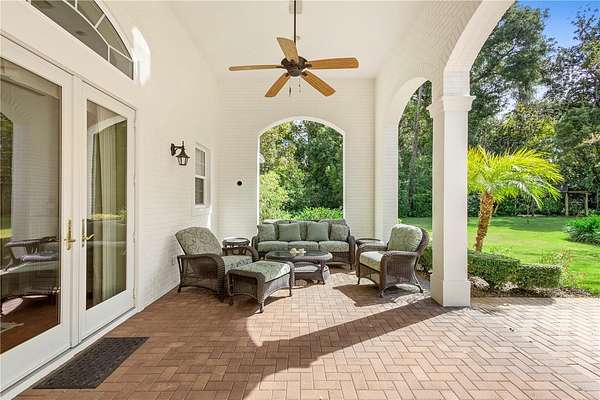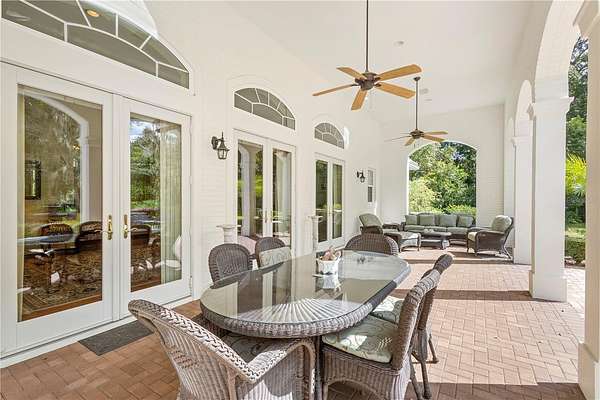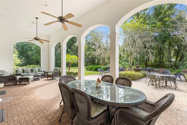 Elegant Estate home in DeLand's most desirable neighborhood. Custom built by Richard Driggers, no expense was spared in this luxurious home. Sturdy block construction with a real slate tile roof. Formal living and dinning rooms, a huge family room with wet bar and ice machine. Soaring ceilings with extensive use of custom woodwork and crown molding. 4 bedrooms, 3 of which have en-suite bathrooms plus a half bath for guest. 2 natural gas fireplaces, a large kitchen that will impress any chef with plenty of counter space and storage. All 4 bedrooms are large, 1 currently set up as an office with built-in storage and a closet. It's a great home for entertaining with triple french doors that lead out to a spacious lanai with lots of pavers leading to the backyard garden area. Oversized 2 car garage and a whole house generator. Professionally landscaped 1.8 acres near downtown and Stetson University, plenty of privacy and a beautiful setting.