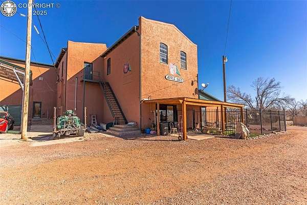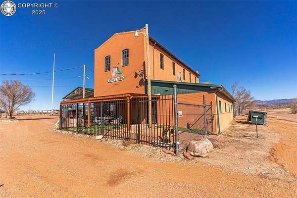 Est $6,657/moRare opportunity to own a historic South Colorado building with a lot of history. It has become a landmark with the Billboard and one of the World's largest Rocking Chairs. One of a kind building with high ceilings, wood beams, and brick. Muriel's inside and out. Many upgrades, including electric, plumbing and roof. It would be a great event center or restaurant with opportunities to make it your own. There is a lot of room with a three-car garage and carport. 3 acres completely fenced in. Over 2000 sq. ft of living space built in. This is a must-see to appreciate it. (Phase 1 Environmental, Site Plan and Traffic Report all completed.)
