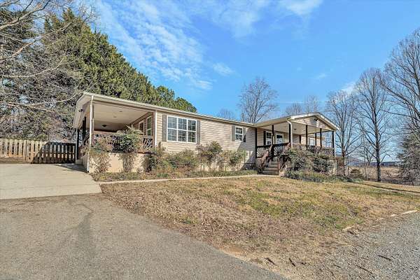 Well-maintained ranch-style doublewide home in a secluded and private setting! 3BR/2BA with semi-open floor plan, laminate flooring, tilt windows, sunroom or office, real wood kitchen cabinets and pantry. Large covered front porch and side porch, both gated, plus a fenced backyard. POA includes use of the community pool and amazing playground; dues are $250 a year starting in April. Will finance FHA or Conventional.