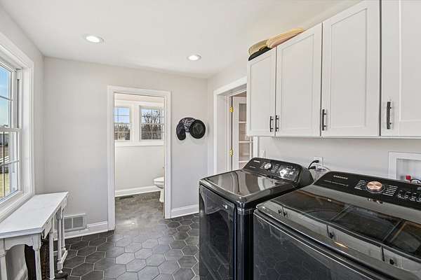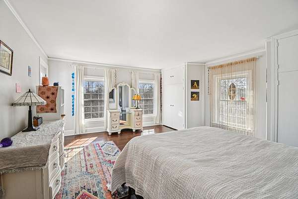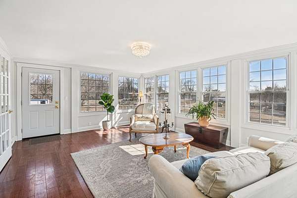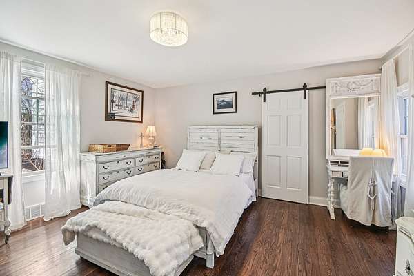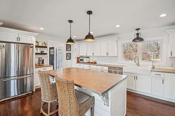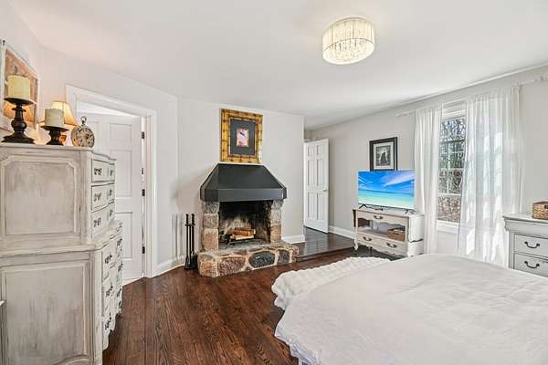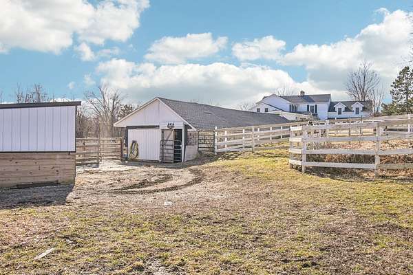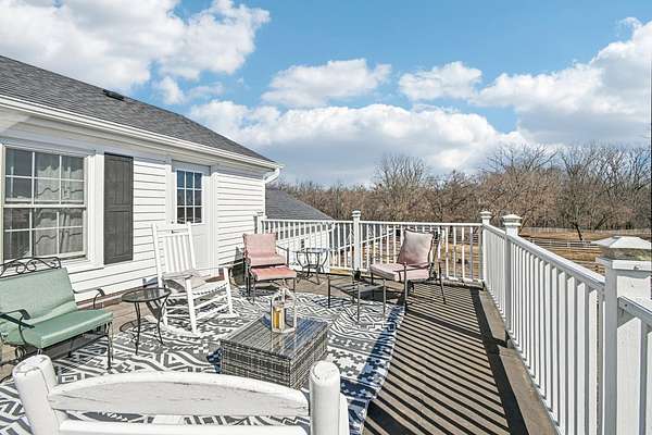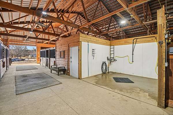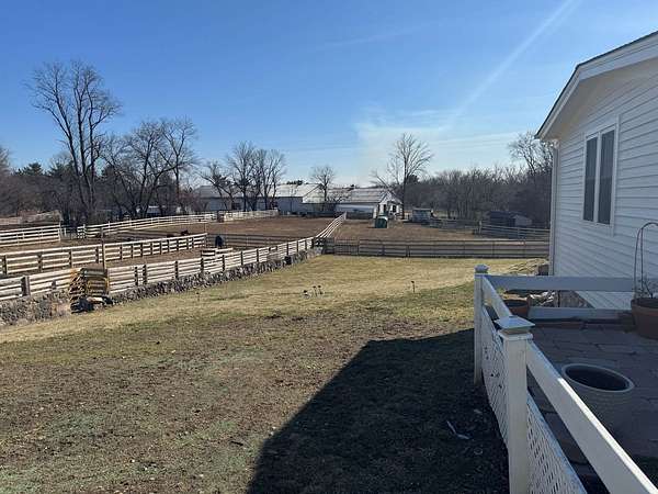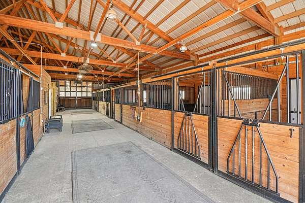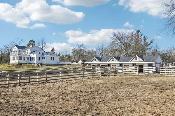 20-Acre Equestrian Estate with Updated Farmhouse, Apartment & Professional Facilities. Set on a picturesque hill and surrounded by original stone fencing, this exceptional equestrian property offers the rare combination of a beautifully restored farmhouse and fully equipped professional horse facilities. The 5-bedroom, 4.1-bath home features over 4,000 sq ft of living space with hardwood flooring, multiple gathering areas, and expansive views of the pastures from nearly every room. The kitchen blends modern updates with farmhouse character, offering white cabinetry, butcher block counters, stainless steel appliances, a farmhouse sink, and an eat-at island. A sun-filled four-season room overlooks the grounds, while a double-sided stone fireplace connects the living room and the main-level primary suite with a private bath. Upstairs are three additional bedrooms and two full baths including a Jack-and-Jill layout. A private apartment above the garage, with a separate exterior entrance. The apartment provides a sitting room, bedroom, full bath, and rooftop deck, ideal for guests, staff, or multigenerational living. Designed for serious equestrians, the facilities meet professional standards. The newer Lester main barn offers 16 insulated stalls with run-outs, radiant heated floors, tack rooms, office, wash rack, and viewing room. The heated indoor arena (approx. 80 x 135) features fiber footing, kickboards and excellent lighting. The outdoor arena includes a limestone base and sand footing. A renovated secondary barn adds additional stalls and turnout access, with multiple paddocks, fenced pastures, riding paths, and outbuildings for storage. In total, the property offers 21 indoor stalls plus outdoor stalls with individual runs. Zoned A1 Agriculture and located just minutes from downtown Woodstock. This property delivers privacy, functionality, and convenience. It's ready for both everyday living and equestrian use.