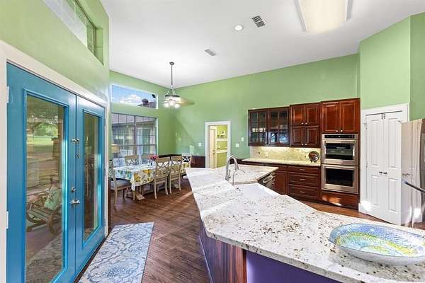Welcome to Kava Ranch - A Private Oasis in the Heart of Argyle Welcome to your private ranch retreat on 12.54 acres in sought-after Argyle--where modern upgrades meet timeless charm. This fully renovated 4,397 sq ft home offers both convenience and tranquility. Inside, you'll find 4 spacious bedrooms (2 bedrooms downstairs, 2 bedrooms upstairs with ensuite bathrooms), 4 bathrooms, a dedicated office with a built-in 250-gallon fish tank, and a large family room featuring high ceilings, hand-scraped wood floors, and wood fireplace add character and warmth throughout. The gourmet kitchen is a chef's dream, complete with premium appliances and elegant finishes. The luxurious primary suite includes a spa-like bathroom and a generous walk-in closet. Step outside to unwind by the sparkling pool or host unforgettable gatherings in the air-conditioned party barn--complete with a bar, kitchenette, and wine cooler. Perfect for animal lovers, the property includes loafing sheds, a chicken coop, and multiple storage buildings all with picturesque views of the pond. Additional features: 3-car garage, in-ground storm shelter, energy-efficient LED lighting, and a Trinity aquifer well for irrigation.