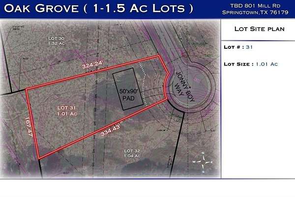 Generous lot sizes range from 1 to 1.5 acres, providing ample space to build your dream home. Utilities are already in place, making the property ready for development. Oak Grove is proudly situated within the highly regarded Springtown ISD.