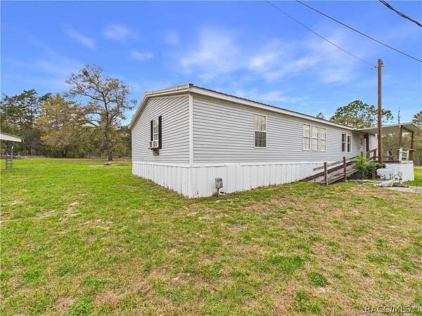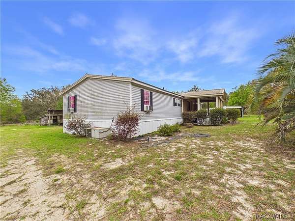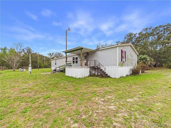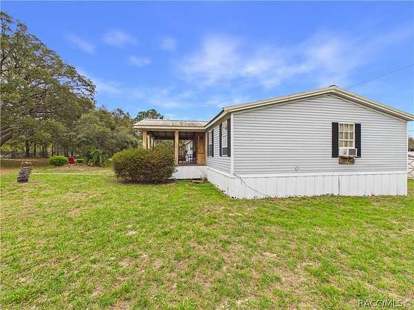 Enjoy the best of Florida living with this charming 3-bedroom, 2-bath mobile home set on nearly 5 acres of peaceful land-complete with NO HOA and endless potential. Whether you're dreaming of rural retreat, space to entertain, or room to expand, this property delivers. Inside, the thoughtfully designed split floor plan offers both comfort and privacy, featuring spacious living areas, a large kitchen for gatherings, and convenient indoor laundry. Ideally situated in a quiet rural setting, yet just minutes from Crystal River, Homosassa Springs Wildlife State Park, local golf courses, shopping, and dining. Outdoor enthusiasts will love the easy access to the Gulf of Mexico, crystal-clear freshwater springs, and endless opportunities for boating and fishing. Plus, the nearby Suncoast Parkway provides a convenient commute to Tampa. Don't miss your chance to own a slice of Florida paradise-schedule your showing today!