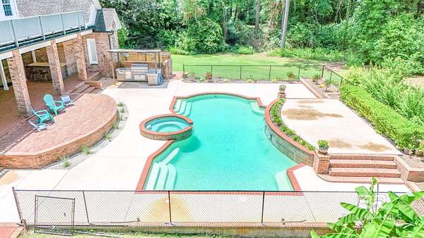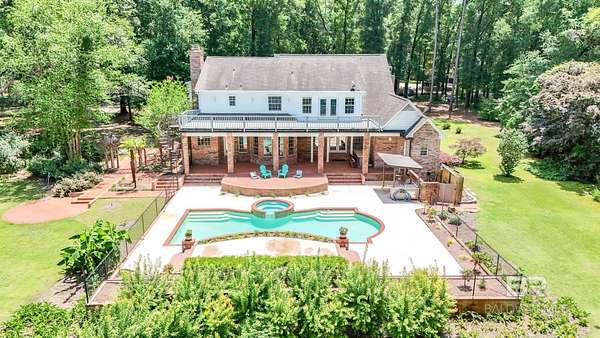 Experience the tranquility of owning two private acres with a spacious gunite, saltwater pool in Saluda Ridge. This property is ideally located approximately 5 miles from I-10, The Bayway, Causeway, fine dining, and retail establishments, offering both seclusion and convenience. This home is perfect for large families or those who enjoy entertaining, featuring 6 bedrooms, 4 full baths, and 3 half baths. It includes a sizeable office with a fireplace, a den with a fireplace and wet bar, and a game room that opens to a second-floor patio spanning the length of the house. This patio overlooks the pool and expansive backyard. The sixth bedroom, situated above the garage, offers privacy with its own half bath, wet bar, and separate entrance. Efficiency is a key feature of this property. The irrigation system is supplied by your well, ensuring low summer water bills. The tankless water heater provides continuous hot water, and the Kohler Whole House Generator ensures uninterrupted power during hurricanes. Additionally, three HVAC units facilitate climate control of the 5,560 square feet.The location within the Spanish Fort school district adds another significant advantage to this remarkable home. Buyer to verify all information during due diligence.