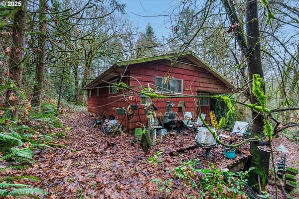 *DO NOT DRIVE ON THE BRIDGE, OR VISIT THE PROPERTY WITHOUT AN APPOINTMENT.* Great opportunity to revive a stunning 10+ acre parcel in a desirable location in South Salem. Battle Creek runs through the middle of the property, necessitating a bridge to reach the residence. The front pasture area would be great for animals, and the property surrounding the home has established trees, creating a private, park-like environment. There is a large shop on the property, and a circular driveway that adds to the 'estate' feel of the acreage. The home was built in 1970, and has a unique design, sitting elevated amongst the woods, with slight changes in elevation on the interior. You will enjoy a beautiful view out of each window and true privacy. Due to the condition of this property, it will likely require a cash-only purchase.