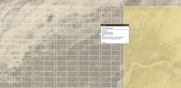 The roads are not graded. Please use 4 wheel drive. Lot 0210754 Longitude -113.8057 Latitude 37.8362 7087 N 6500 W, Beryl, UT 84714 Lot 0332012 Longitude -113.8365 Latitude 37.8337 7036 N 7900 W, Beryl, UT 84714