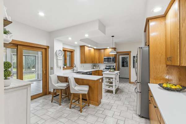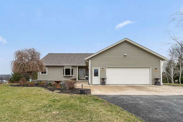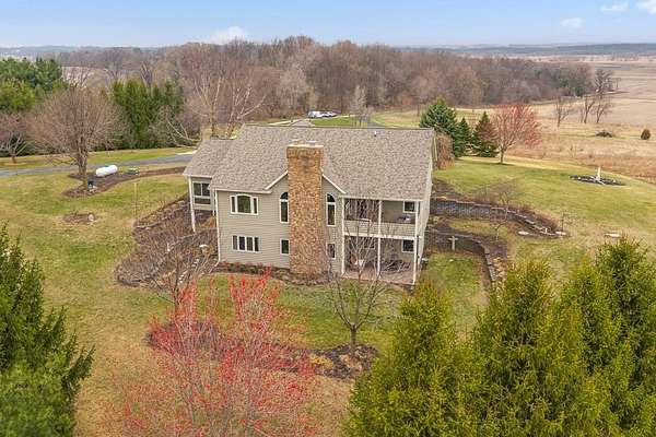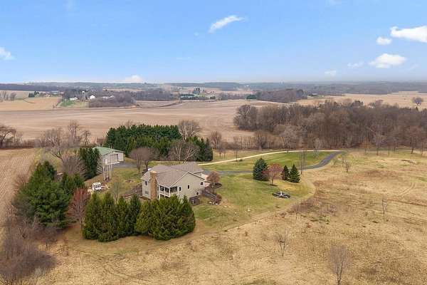 Set atop a scenic hill, this impeccably maintained home offers sweeping views, abundant wildlife, and unforgettable sunsets (see the pics!). Thoughtful updates include a new roof and fresh exterior paint (2025), ensuring peace of mind for years to come. Ideal for hobbyists and outdoor enthusiasts, the property features an oversized heated garage, a heated pole barn with lofted storage, and animals like horses are allowed! The walk-out lower level with private garage access offers a full kitchen, perfect for an in-law suite. Enjoy the outdoors with a greenhouse, raised beds, and mature perennials, along with multiple outdoor living spaces including two patios and a four-season room. Numerous included items, plus a home warranty complete the package.