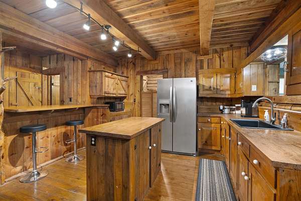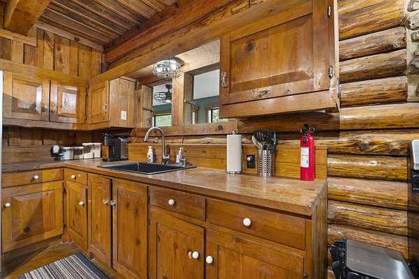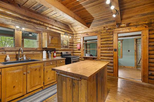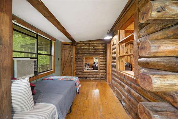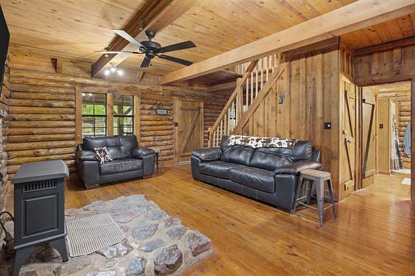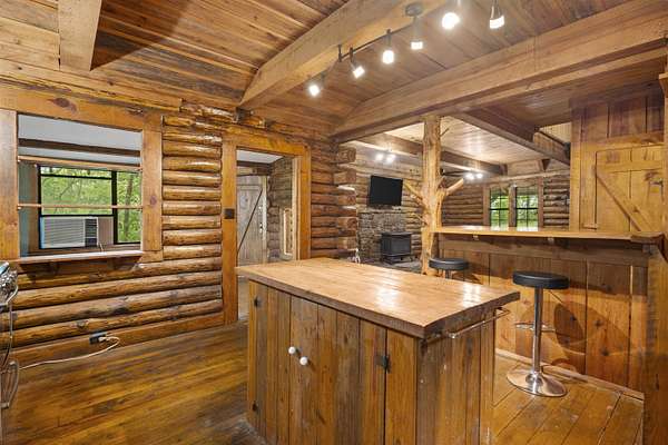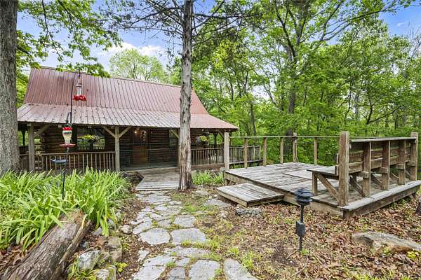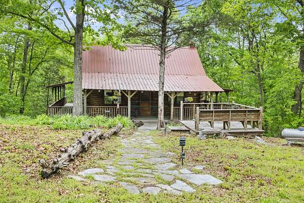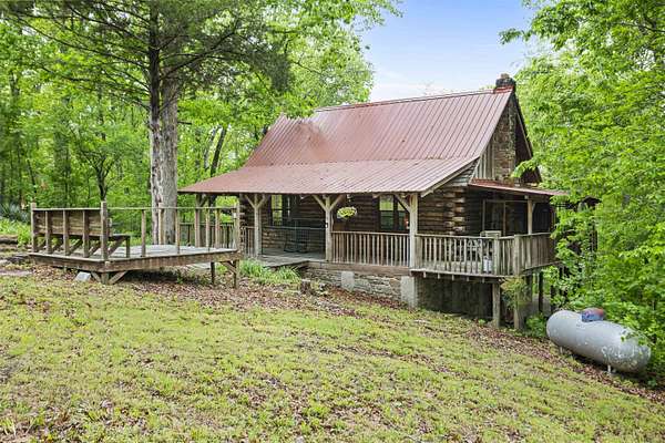 Welcome to 709 Jones Road in Timbo, Arkansas — a fully furnished authentic log cabin tucked away down a quiet dirt road and literally nestled in the mountains of Stone County, where the property stretches across the clear waters of Roasting Ear Creek. This is the kind of place people dream about when they picture a true Ozark escape. Inside, the cabin offers a main-level bedroom plus a two-sided loft that comfortably holds three king beds in total. An enclosed, heated and cooled sleeping porch wraps around the back, creating a year-round retreat surrounded by nature. The kitchen blends rustic charm with modern appliances and conveniences, making everyday living or guest stays effortless. A stand-up crawlspace adds security and practicality, while a hidden ground-level porch gives you one more place to relax, listen to the creek, and enjoy the quiet. Whether you’re looking for a nightly rental investment, a weekend getaway, or a full-time residence, this property delivers privacy, character, and natural beauty — all just minutes from the music, shops, and energy of beautiful Mountain View, Arkansas. All furnishings to be included with acceptable offer.