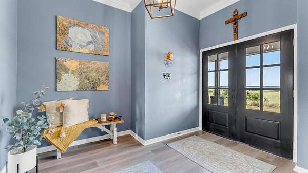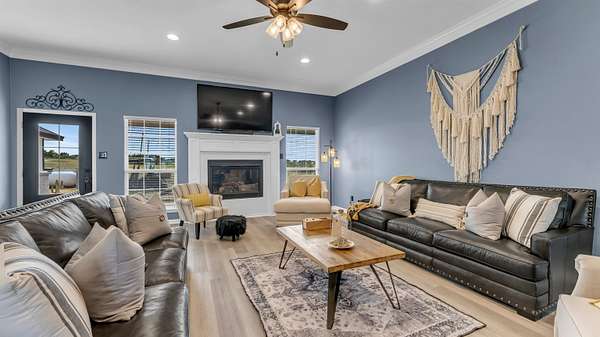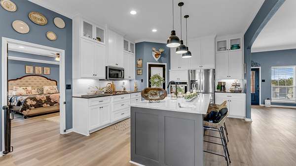 Experience serene Hill Country living in this beautifully crafted 4 bedroom, 2.5 bath home situated on 10 acres in the desirable gated community of Ranches of Canyon Creek. With 2,550 sq ft of thoughtfully designed space, this residence blends modern features with country charm. The gourmet kitchen is a true centerpiece, featuring a granite center island with a built in farm sink, custom cabinetry, a built in gas cooktop and oven, Energy Star appliances, and granite countertops throughout. The spacious master suite provides a private retreat with granite dual vanities, a soaking tub, and a separate shower. The master bath includes two closets, a water closet, and custom cabinetry. The master bedroom also offers an additional oversized closet that can flex as extra storage or office space. Durable luxury vinyl flooring with a lifetime warranty flows throughout the home, combining elegance with low maintenance convenience. Outdoor living is just as inviting, with covered front and back porches, a fire pit with seating area, a water storage tank, and an owned propane tank for added efficiency. The acreage offers both ag and wildlife exemptions, enhancing its value and versatility, and a wet weather creek runs along the back of the property, adding natural beauty and character. This exceptional residence comes fully furnished, making it move in ready for your next chapter.