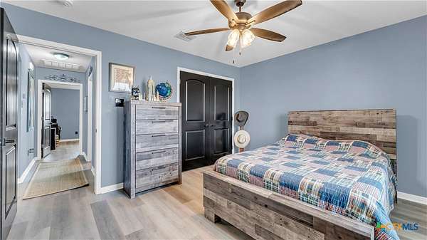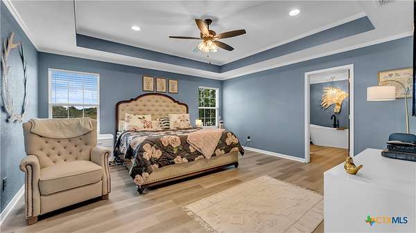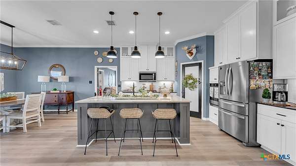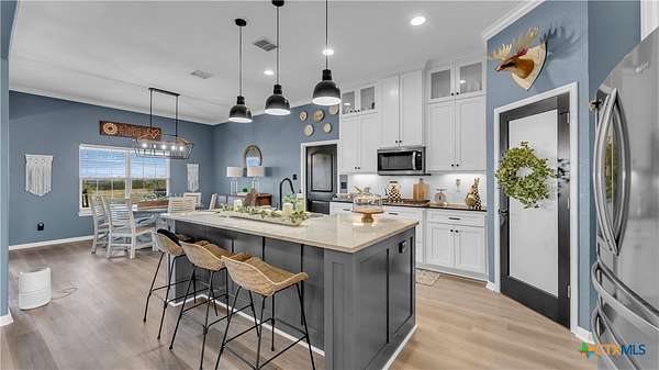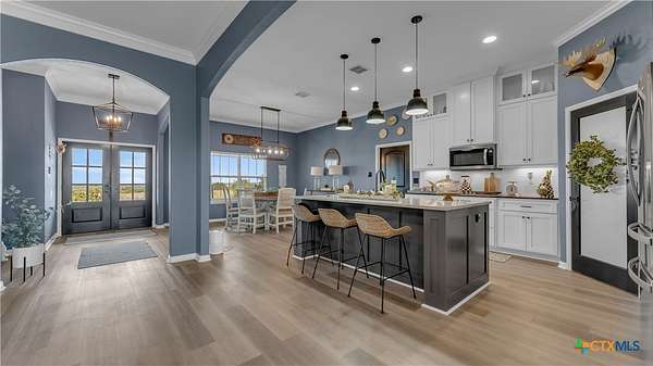 Experience serene Hill Country living in this beautifully crafted 4 bedroom, 2.5 bath home situated on 10 acres in the desirable gated community of Ranches of Canyon Creek. With 2,550 sq ft of thoughtfully designed space, this residence blends modern features with country charm. The gourmet kitchen is a true centerpiece, featuring a granite center island with a built in farm sink, custom cabinetry, a built in gas cooktop and oven, Energy Star appliances, and granite countertops throughout. The spacious master suite provides a private retreat with granite dual vanities, a soaking tub, and a separate shower. The master bath includes two closets, a water closet, and custom cabinetry. The master bedroom also offers an additional oversized closet that can flex as extra storage or office space. Durable luxury vinyl flooring with a lifetime warranty flows throughout the home, combining elegance with low-maintenance convenience. Outdoor living is just as inviting, with covered front and back porches, a fire pit with seating area, a water storage tank, and an owned propane tank for added efficiency. The acreage offers both ag and wildlife exemptions, enhancing its value and versatility, and a wet-weather creek runs along the back of the property, adding natural beauty and character. This exceptional residence comes fully furnished, making it move-in ready for your next chapter.