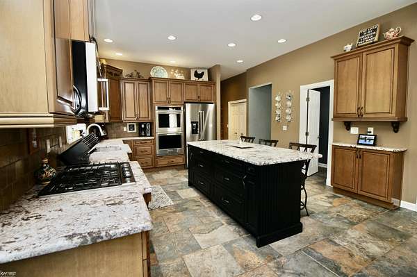 Motivated Seller! This custom-built, beautifully updated home offers over 6,000 square feet of finished living space on 3.2 private acres in Grand Blanc. Designed for comfort and versatility, it features five bedrooms, four full bathrooms, spacious living and dining areas, a large family room with a fireplace, and a well-appointed kitchen with generous cabinetry and prep space. The fully finished basement includes a projector screen/movie area, a full bath, a bedroom, an office, custom built-in display cabinets, and new luxury vinyl plank flooring--providing ideal space for recreation, hobbies, or guests. The heated all-season sunroom allows for year-round enjoyment, while recent upgrades such as a new roof and a whole-home generator add peace of mind. Outdoors, professional landscaping and a full-yard sprinkler system enhance the property's appeal. A renovated 1,200-square-foot pole barn--fully finished with heat, air conditioning, insulation, and epoxy flooring--offers flexible options for a workshop, studio, gym, or business use. Listing agent is related to the seller; please include acknowledgment of this relationship when submitting paperwork.