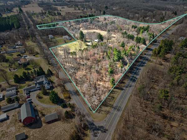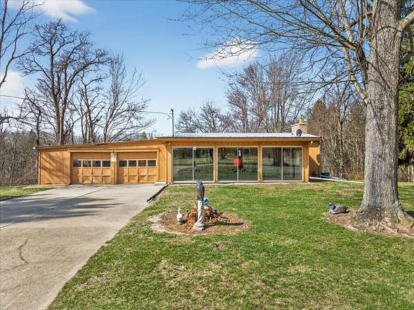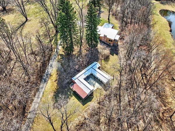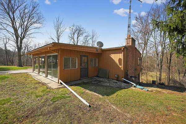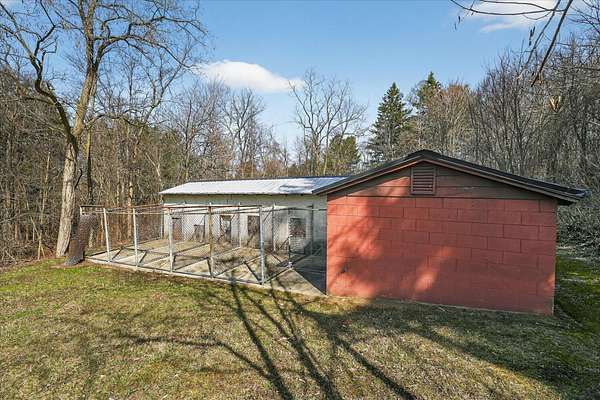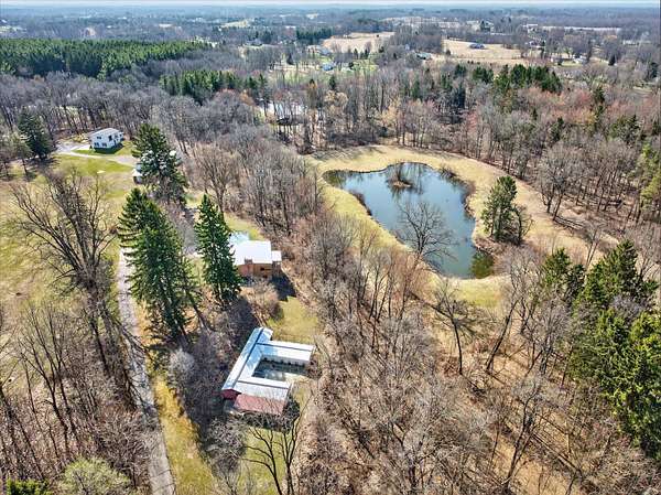 A rare opportunity on over 28 acres of rolling land where mid-century potential meets a truly one-of-a-kind setting. This private estate is surrounded by mature trees where wildlife are frequently spotted. While the residence is ready for TLC and modern updates with a walk-out basement flooded with natural light and scenic views. The real value lies in the spectacular grounds, which once served as a training site for harness horse racing and features wide trails throughout the woods and around the large 1 acre pond. The home features a sunroom offering a peaceful retreat. All structures, including the home and a versatile outbuilding, are protected by metal roofs. Previously utilized as dog kennels, this outbuilding offers incredible flexibility for a hobby farm, car storage, a workshop, or a dedicated gardening center. With extensive road frontage on three sides, this expansive parcel offers incredible potential for a private homestead or future development in a park-like setting.