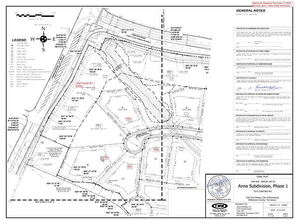 From Nashville, head S on I-65. Take exit 71 toward Brentwood and turn right onto Concord Rd. At second church stop light, use either of the two left lanes to turn S on a private drive that leads to Anna Rd. Turn right on Anna Dr. Lot is on the right.