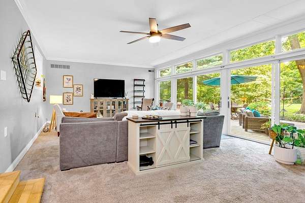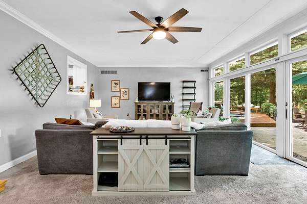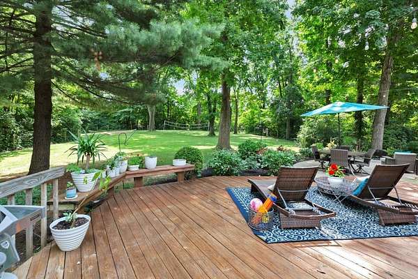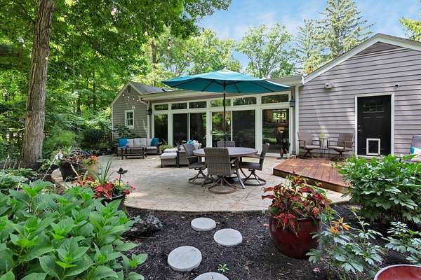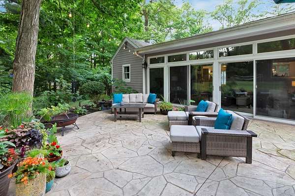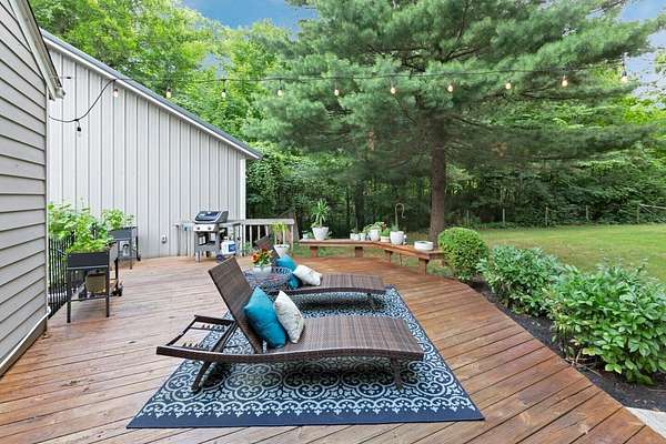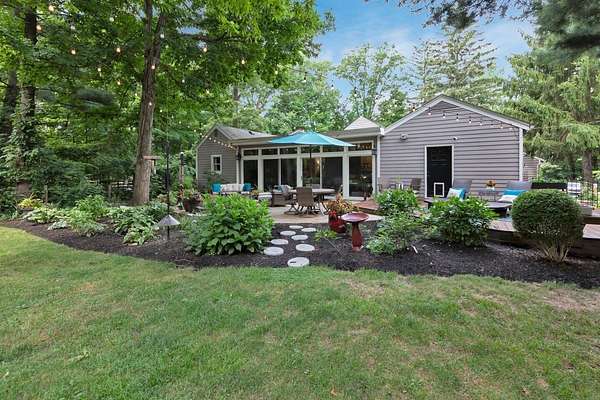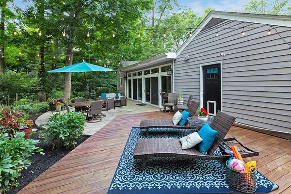 Furnished or unfurnished! Sprawling ranch on 3 wooded acres. A private park in your very own back yard. 1,000 sq ft in patio/decking looks out into a huge fenced backyard. Woods surrounding this home are part of the property. Vaulted ceilings as you enter into a giant dining/kitchen. Spacious pantry. Abundant cabinets & one of the largest kitchen islands you've ever seen. Viking gas range/appliances.Extra large living room with a wall of windows. Additional living room with wood burning fireplace & more windows leading to a custom garden &600 sqft. Beautiful leaded glass French doors leads to a completely updated home with vaulted ceilings a big open floor plan, 3 large bedrooms, 2 full and 1 half baths. 10 min fr Bridge Park, dwntwn Powell. 5 minutes fr zoo. Landlord is agent.
