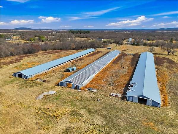 Discover the endless possibilities with this 59.42 acre m/l tract ideally located less than 5 miles from Westville and only 20 miles to Siloam Springs. This former poultry operation offers incredible infrastructure already in place, making it perfect for storage, agricultural use, recreation, or future redevelopment. The property features three chicken houses that are no longer in operation but provide excellent large-scale storage or workshop space. Utilities are well established with gas ran to all chicken houses, two water wells, rural water, and a water filtration system already installed. A 1,728 sq ft (per CH) 2 bed, 2 bath home sits on the property and would make a great rental, employee housing, or primary residence. Additional improvements include a greenhouse and two septic systems, giving flexibility for expansion or multiple homesites. Fiber internet is available, offering modern connectivity in a peaceful country setting. Owner financing available.