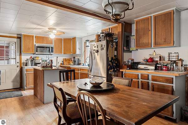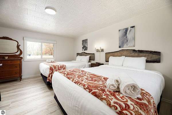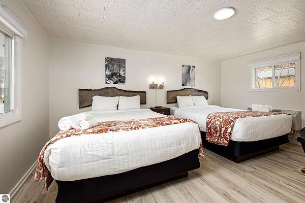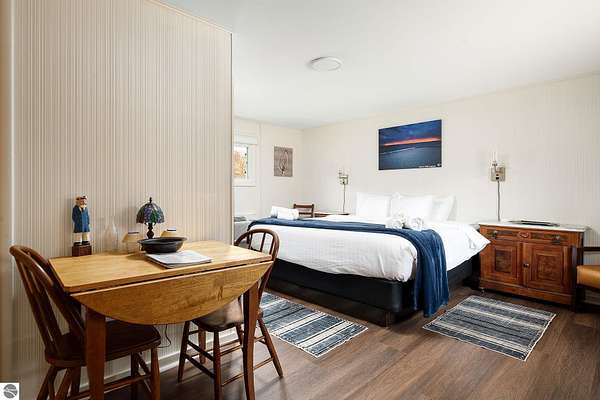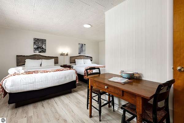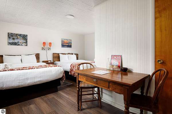 Welcome to The Foothills Motel & Cafe, a beloved Leelanau County landmark just minutes from Glen Arbor, Glen Lake, and the Sleeping Bear Dunes. This charming property captures the heart of "Up North" living -- where locals and visitors gather for good food, friendly faces, and the quiet beauty of Northern Michigan. The Foothills Cafe, approximately 720 sq. ft. and updated in 2024, is a long-time favorite for breakfast and lunch, open until 2:00 p.m. during the summer season. With loyal patrons and steady tourist traffic, there's excellent potential to extend hours, add catering, or host private events. The 8-room boutique motel, updated in 2024, features six rooms with two queen beds and two rooms with one king bed. Each offers individual heating and air conditioning, WiFi, and cable television, ensuring guests a comfortable stay in a peaceful wooded setting. A two-bedroom apartment provides ideal on-site living space for an owner or caretaker, while a 720 sq. ft. cabin with bath and shower adds additional rental or housing versatility. Situated on 5.9 wooded acres with three available land splits, this property offers ample room for expansion or future development. Outdoor enthusiasts will love being close to Palmer Woods Forest Reserve for mountain biking and cross-country skiing -- and just down the road, easy access to Big Glen Lake and Lake Michigan. With its inviting atmosphere, modern updates, and unbeatable location, The Foothills Motel & Cafe is a rare opportunity to live, work, and invest in the heart of Leelanau County. The business is open. Schedule a appointment for showings.