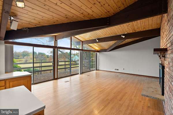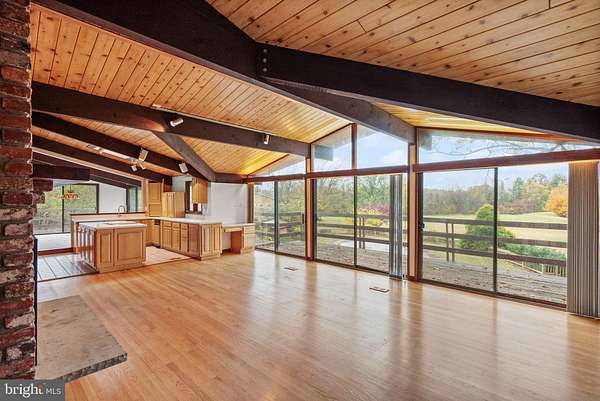 A rare opportunity to own a custom mid-century modern home on a stunning private lot in Warrenton! This architecturally distinctive residence features soaring vaulted wood-beamed ceilings, expansive walls of glass, and open-concept living spaces designed to bring the outdoors in. The main level showcases a dramatic great room with panoramic views, a floor-to-ceiling brick fireplace, and direct access to an oversized deck - perfect for entertaining or enjoying peaceful country sunsets. The kitchen offers an open layout with natural wood cabinetry and center island, ready for your modern design touches. The lower level provides walk-out access and endless possibilities for recreation, home office, or guest space. The property's exterior is equally impressive, with mature trees, a fenced yard, and an in-ground pool awaiting restoration - offering the potential to create a true backyard retreat. The property also includes an existing exercise building, designed to match the main home, complete with a full bathroom - ideal for a private studio, guest house, or future accessory dwelling unit (ADU). Nestled on a serene parcel with rolling countryside views, this home combines privacy, character, and space - all within minutes of downtown Warrenton, wineries, and major commuter routes. Bring your vision to life in this one-of-a-kind property where architectural charm meets unlimited potential. *Additional Lots available -VAFQ2019404 and VAFQ2019402*