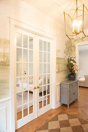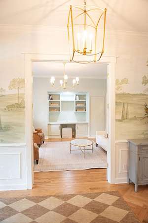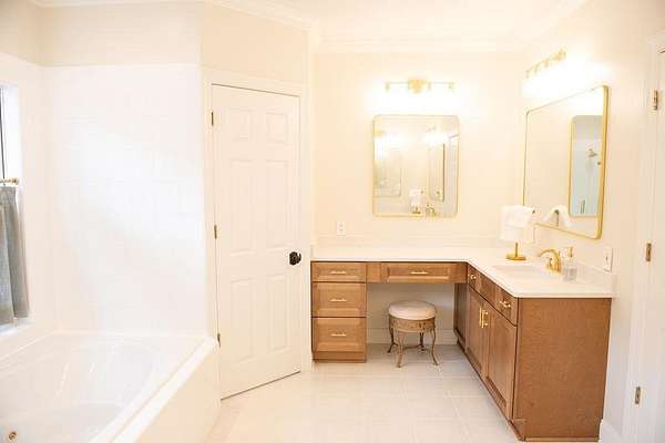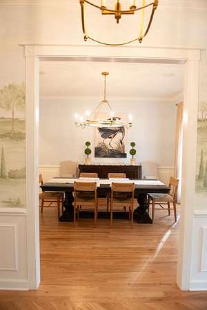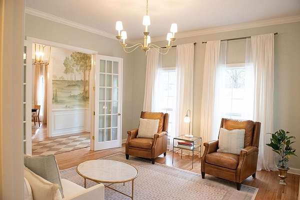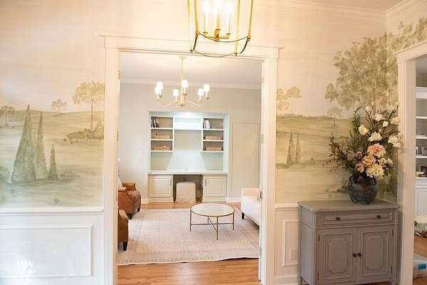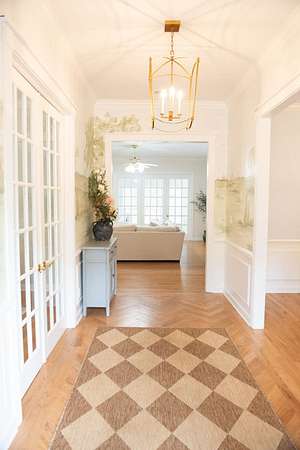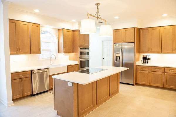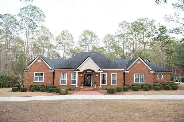 Situated on 1.6 acres of beautifully landscaped grounds in a highly sought after location, this exceptional all brick 4 bedroom, 3.5 bath custom home offers the perfect blend of elegance, privacy, and convenience while remaining close to everything and tucked away on a spacious lot with a circular driveway that creates impressive curb appeal. Designed with a great, thoughtfully planned layout, the split floor plan split twice provides ideal separation of space and even offers the potential for a private guest suite. Inside, you will find a formal dining room perfect for hosting gatherings, a large primary suite designed for comfort, and a dedicated office ideal for working from home. The fully remodeled kitchen showcases quartz countertops, a marble backsplash, a farm sink, custom cabinetry, two pantries, and high end finishes throughout. Polished brass gallery railing and designer Ballard Designs light fixtures elevate the space, while custom window treatments add warmth and sophistication. The kitchen flows beautifully into the main living areas, making the home exceptional for entertaining. The gas fireplace has been tastefully updated and serves as a warm focal point, while the remodeled laundry room adds both style and function. The spa inspired primary bath offers a luxurious retreat. Hardwood flooring and tile run throughout much of the home, complemented by new lighting throughout and a stunning hand painted foyer that makes a memorable first impression. A remote controlled 15 zone sprinkler system keeps the expansive grounds lush year round, and the spacious deck rebuilt in 2025 provides the perfect outdoor entertaining space. This meticulously maintained home truly embodies refined living at its finest.
