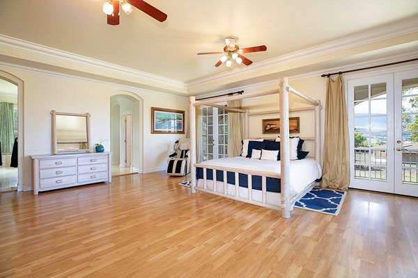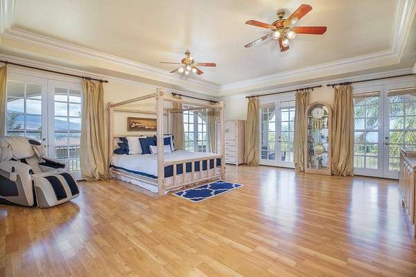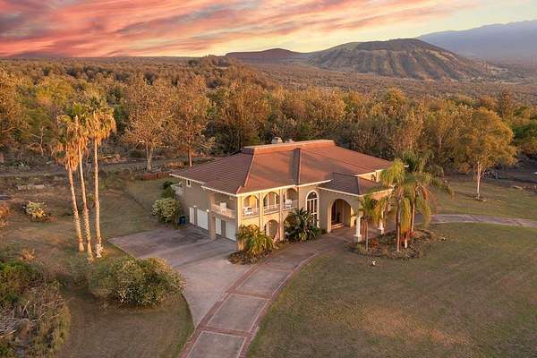 Experience privacy, space, and refined island living inside gated Puu Lani Ranch. Set on two landscaped acres at a comfortable 2,200 ft elevation, this 6,030-square-foot residence offers 4 bedrooms, 4.5 bathrooms, multiple living areas, a private office, and a dedicated library.