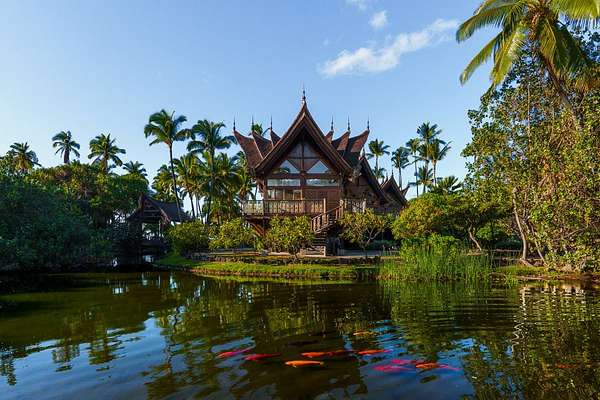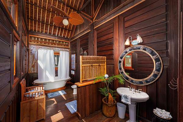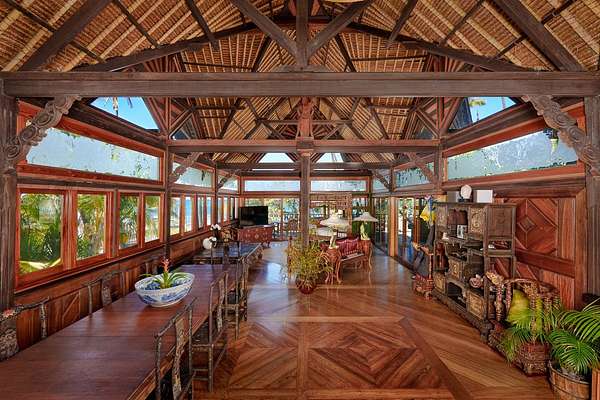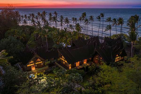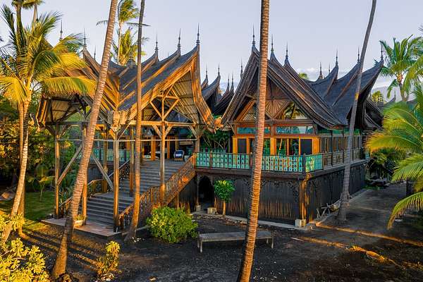 A visionary hideaway originally crafted in Indonesia and painstakingly reassembled on the pristine shores of the Big Island offers a once-in-a-generation opportunity to own an architectural masterpiece. Where jagged lava fields meet the endless azure of the Pacific Ocean sits the crown jewel of the Kohala Coast. Far more than a residence, this compound is a testament to extraordinary personal vision and global craftsmanship. This is a magnificent Balinese estate transported across the sea to rest seamlessly upon Hawaiian shores. Kiholo Bay is a marvel of untouched nature, and this property respects that raw beauty. Designed in the traditional Balinese style, the estate is organized as a rhythmic series of independent pavilions. These structures are thoughtfully arranged in a compound layout woven together by a network of open-air decks and sheltered walkways. Originally built in Bali by 280 master craftsmen using Indonesian ironwood and teak, the structure was dismantled and shipped, then reassembled in Hawaii using traditional wooden pegs. Its most striking feature is a massive roof of over one million wooden shingles meticulously laid to resemble dragon skin. The interior serves as a living museum blending Southeast Asian history with the Hawaiian environment. Living spaces are adorned with intricate Indonesian carvings while sliding doors vanish to invite the Pacific breeze. The kitchen sits in its own circular pavilion, designed to promote natural airflow and effortless outdoor dining. The retreat includes an expansive direct ocean primary pavilion. From this vantage point, sliding walls reveal a breathtaking panorama where the deep blues of the Pacific transition into the rising silhouettes of the Kohala Mountains. Completely self-sustaining with its own water and solar systems, the estate is a resilient cultural masterpiece that harmonizes the spirit of Bali with the majesty of the Big Island.